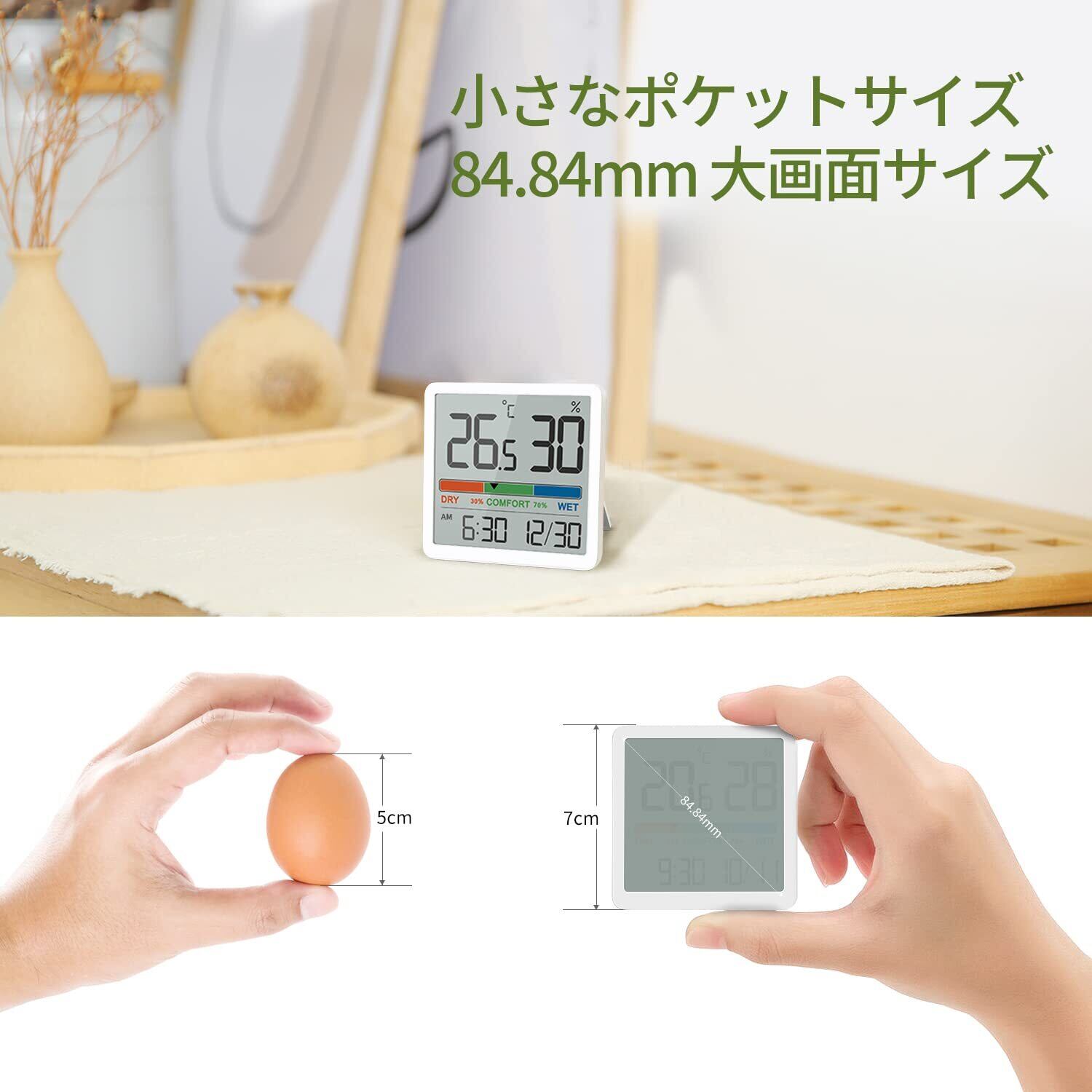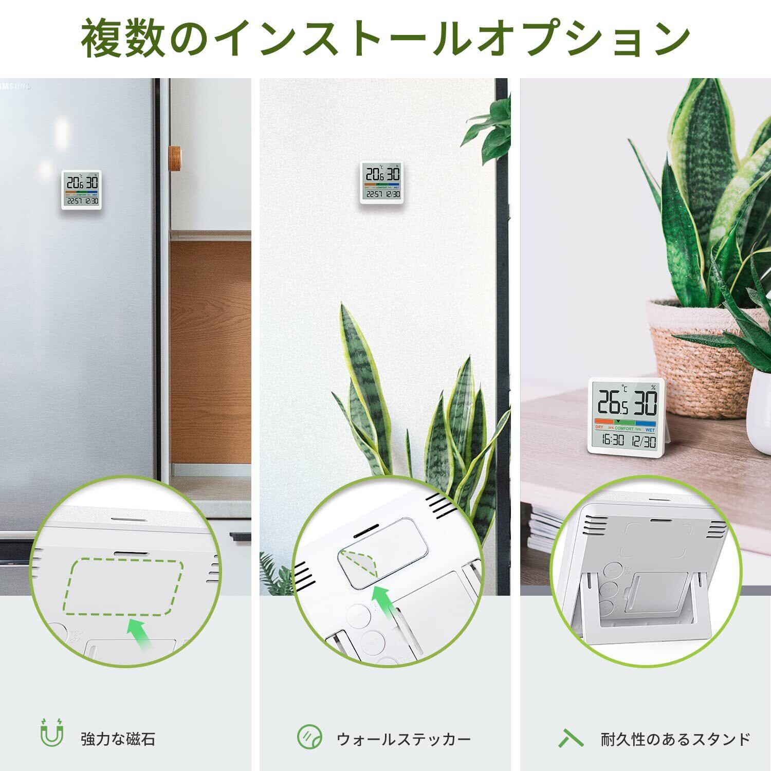 NOKLEAD 温湿度計 デジタル湿度計 室内温度計 壁掛け 卓上スタンド マグネット快適度表示 デート時計付き LCD見やすい大画面 白 梅雨対策 熱中症対策予防 肌の潤い インフル対策 健康管理 温湿度計測定器
