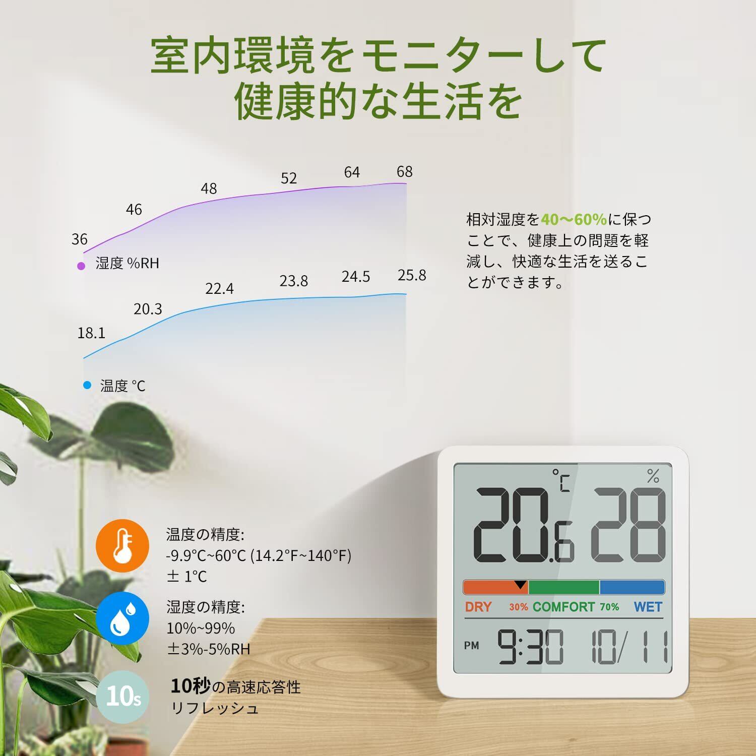 【高精度センサー】温度は最大±1C、湿度は最大±3-5%RHの誤差で、高精度で信頼性の高い温湿度測定を実現できます。また、10秒ごとにデータを更新し、精度と感度両方とも優れています 。