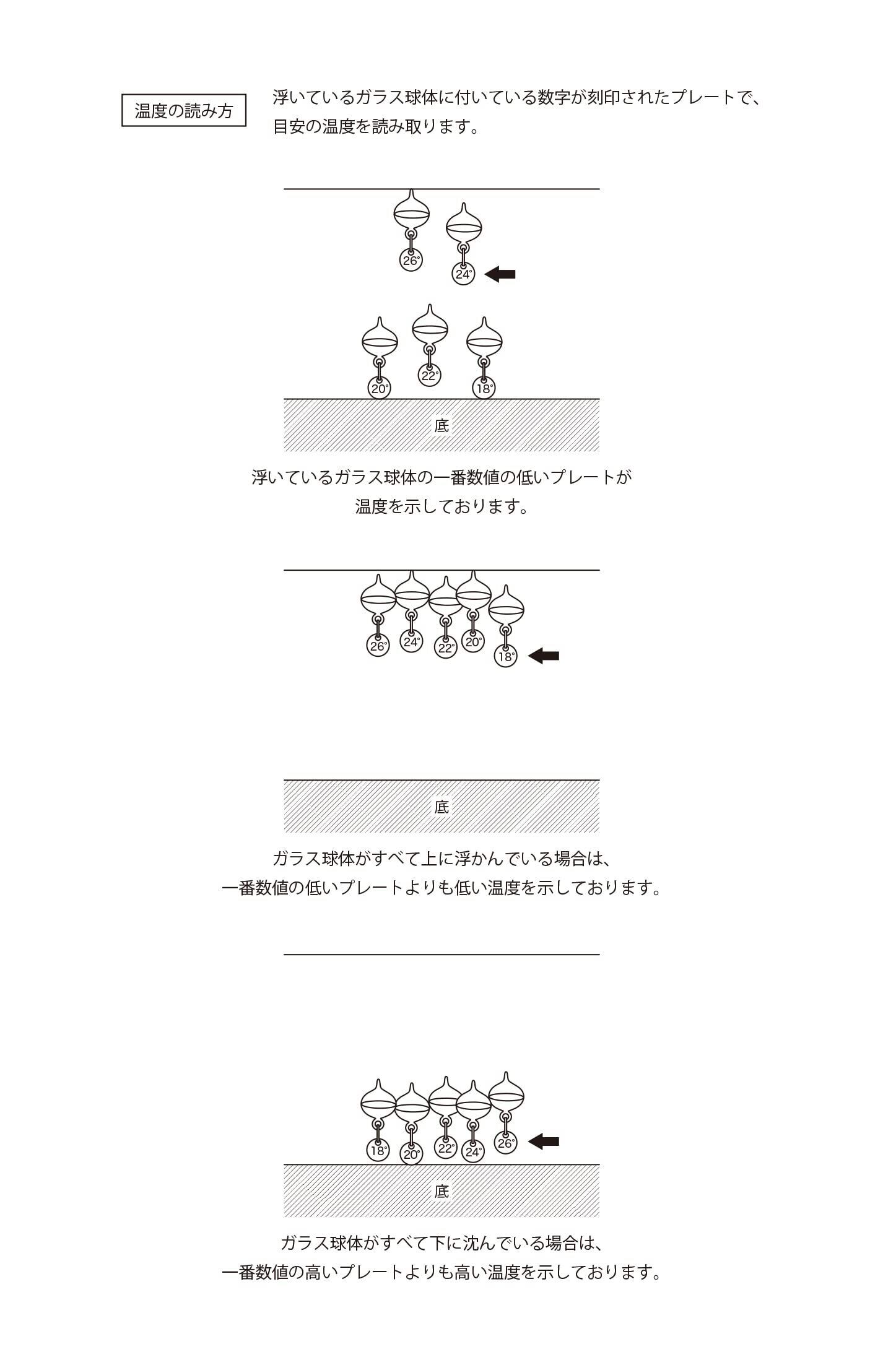 色 ガラスフロート温度計