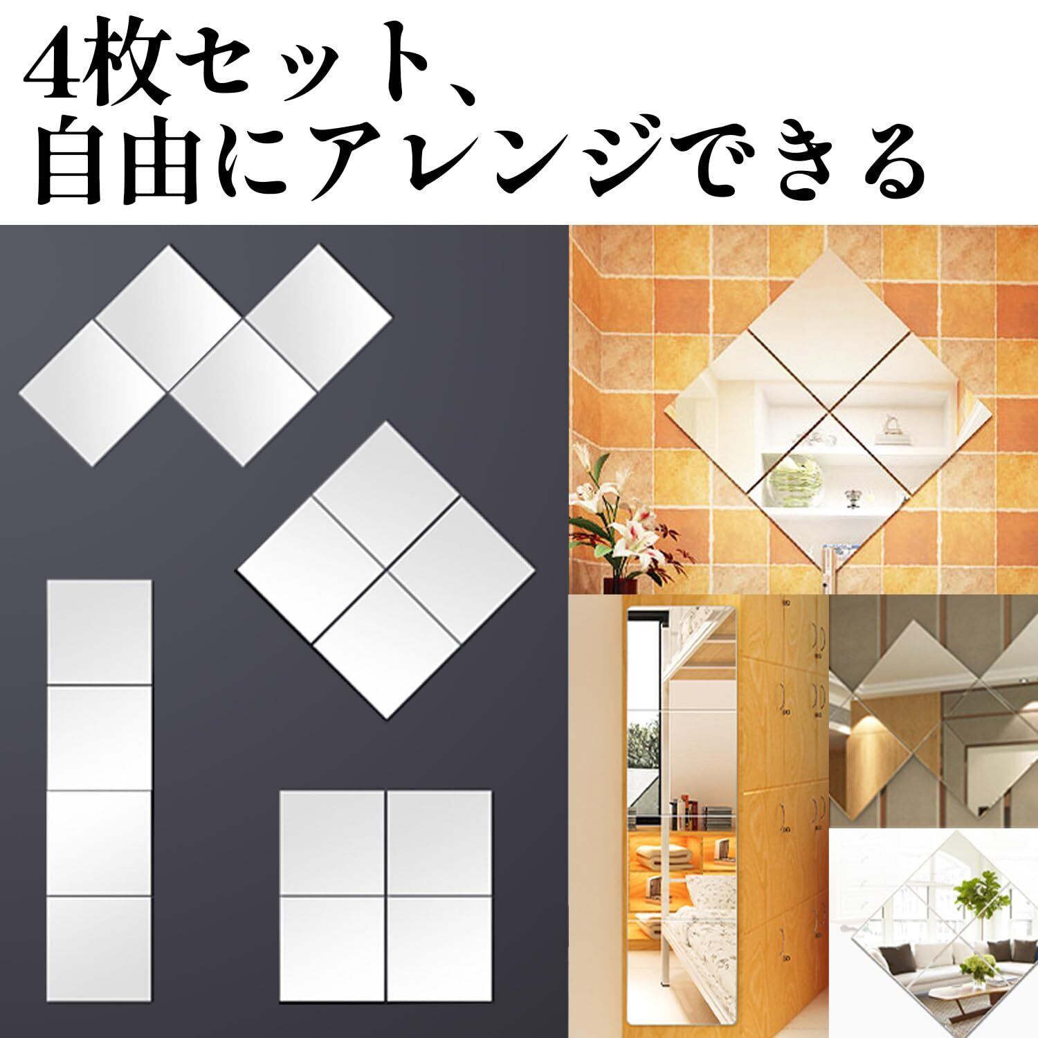 【どこでも貼れる割れない鏡】【割れない】 鏡 全身鏡 姿見鏡 壁掛け ミラー 壁掛け鏡 浴室 便利 穴あけ不要 軽量 (30cm×30cm×4枚セット)