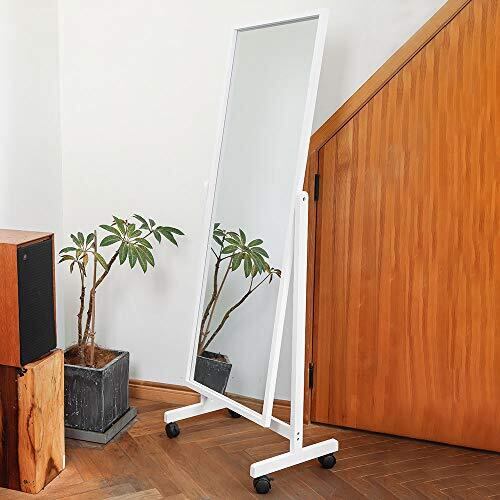 MiraHope スタンドミラー 省スペース キャスター付きミラー 全身 ミラー 鏡 姿見 全身鏡 木製 飛散防止 161*55CM (ホワイト)