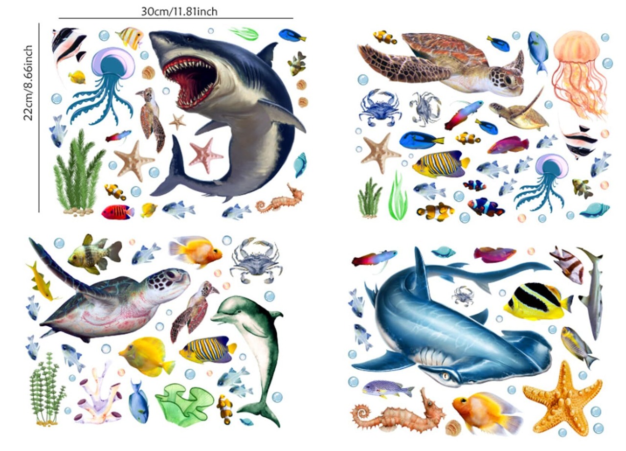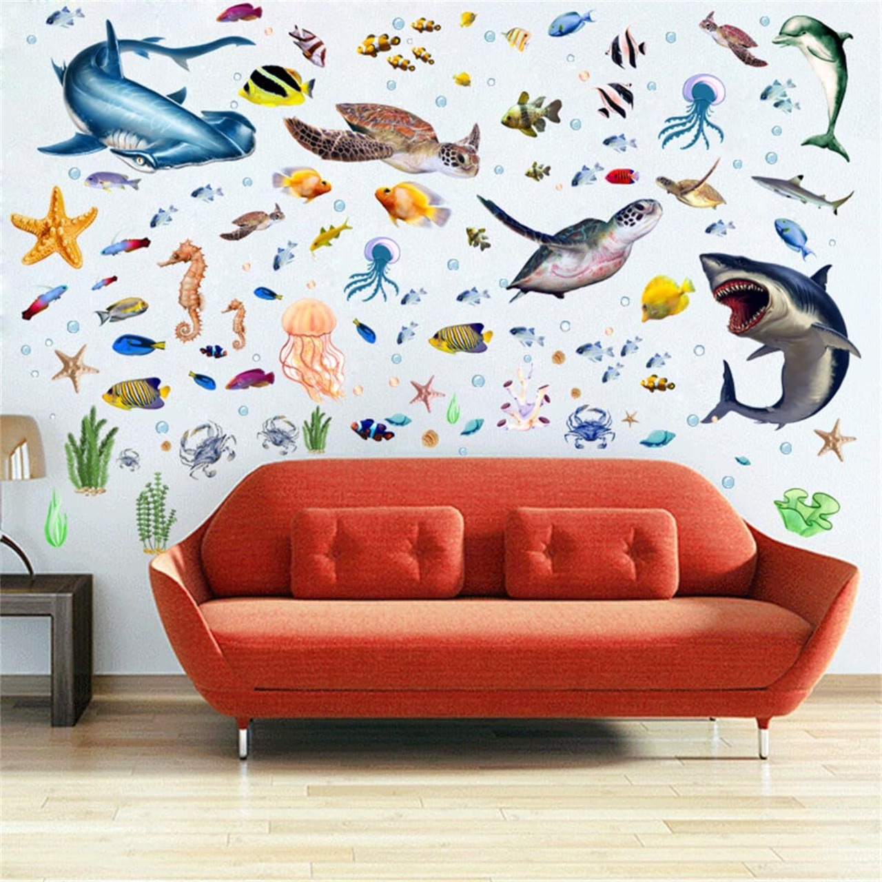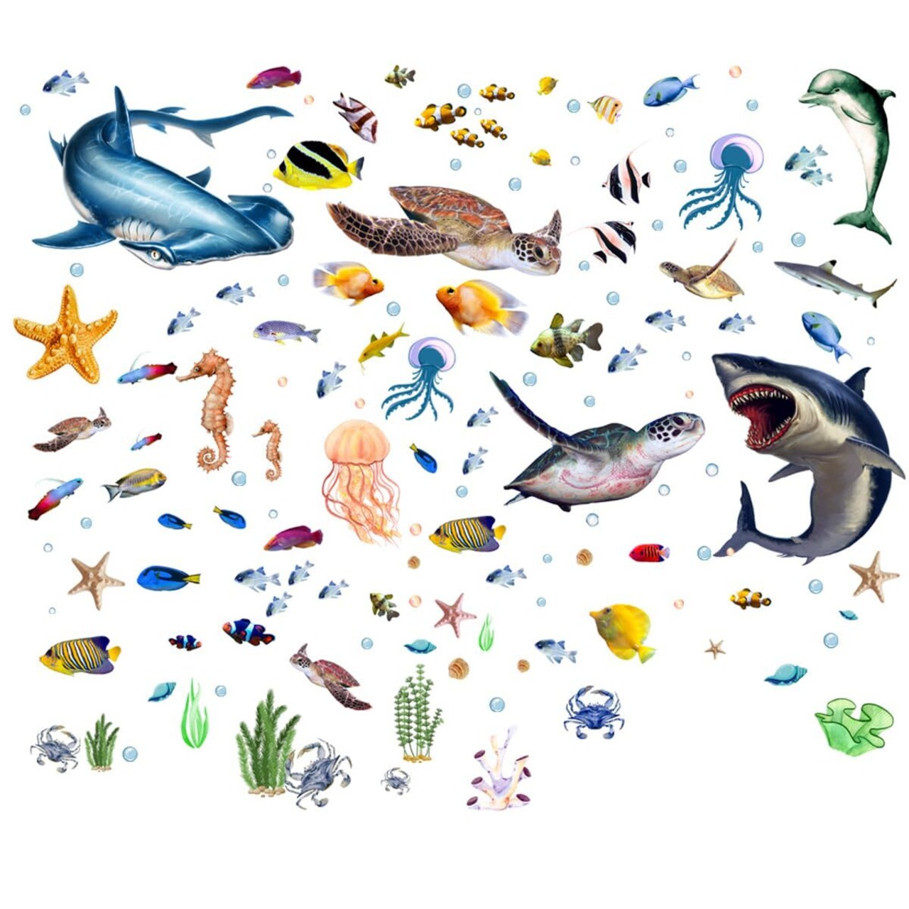 HOTIYOK ウォールステッカー 海 深海魚 おしゃれ 海洋生物 ウォールシール 海の中 サメ ウミガメ クラゲ 水ぶくれ 壁ウォールステッカー 絵画風 壁 シール DIY ウォールすてっかー 壁 家具 ステッカー お 風呂 ポスター 防水 ウォールペーパー 幼稚園 保育園 wall sticker decor 男の子 女の子 子供 部屋 御洒落 ウォールデコ