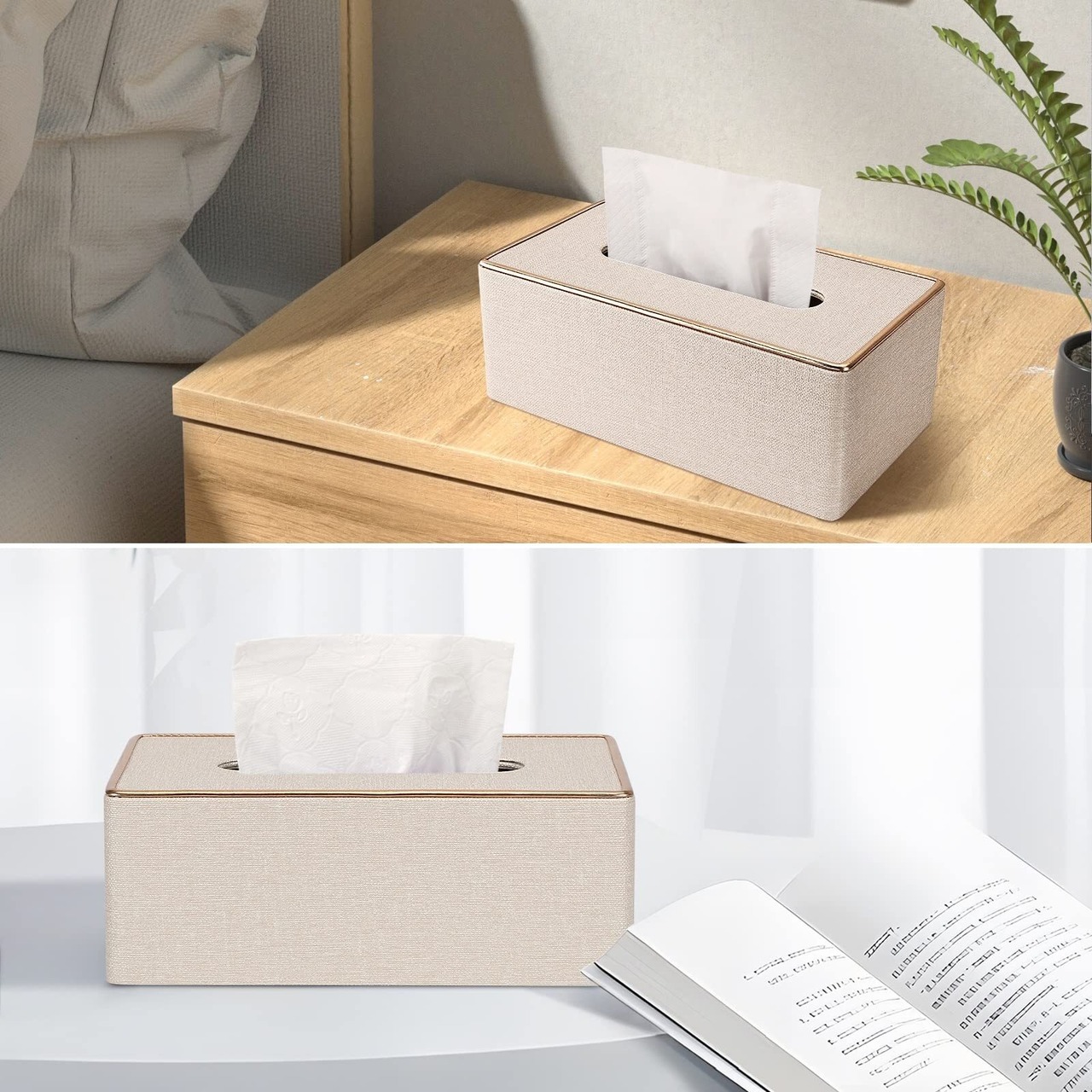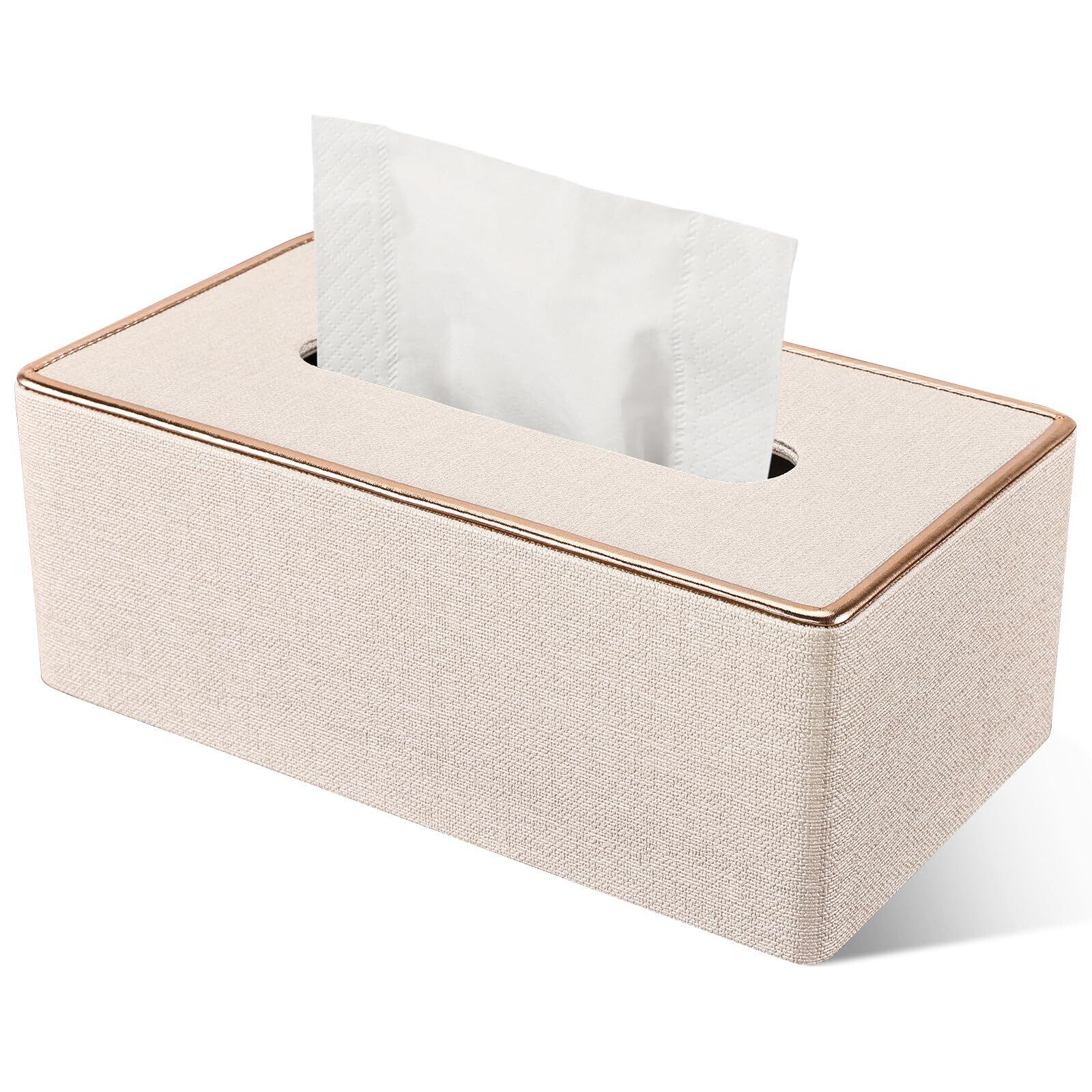 Richblue ティッシュケース おしゃれ ティッシュボックス ティッシュカバー 高級 PUレザー ティッシュ 箱 内寸約W23.5×D12×H8㎝ ペーパータオルケース ティッシュホルダー 家/オフィス/車用/ホテル ファッション インテリア ギフト(金縁+白)