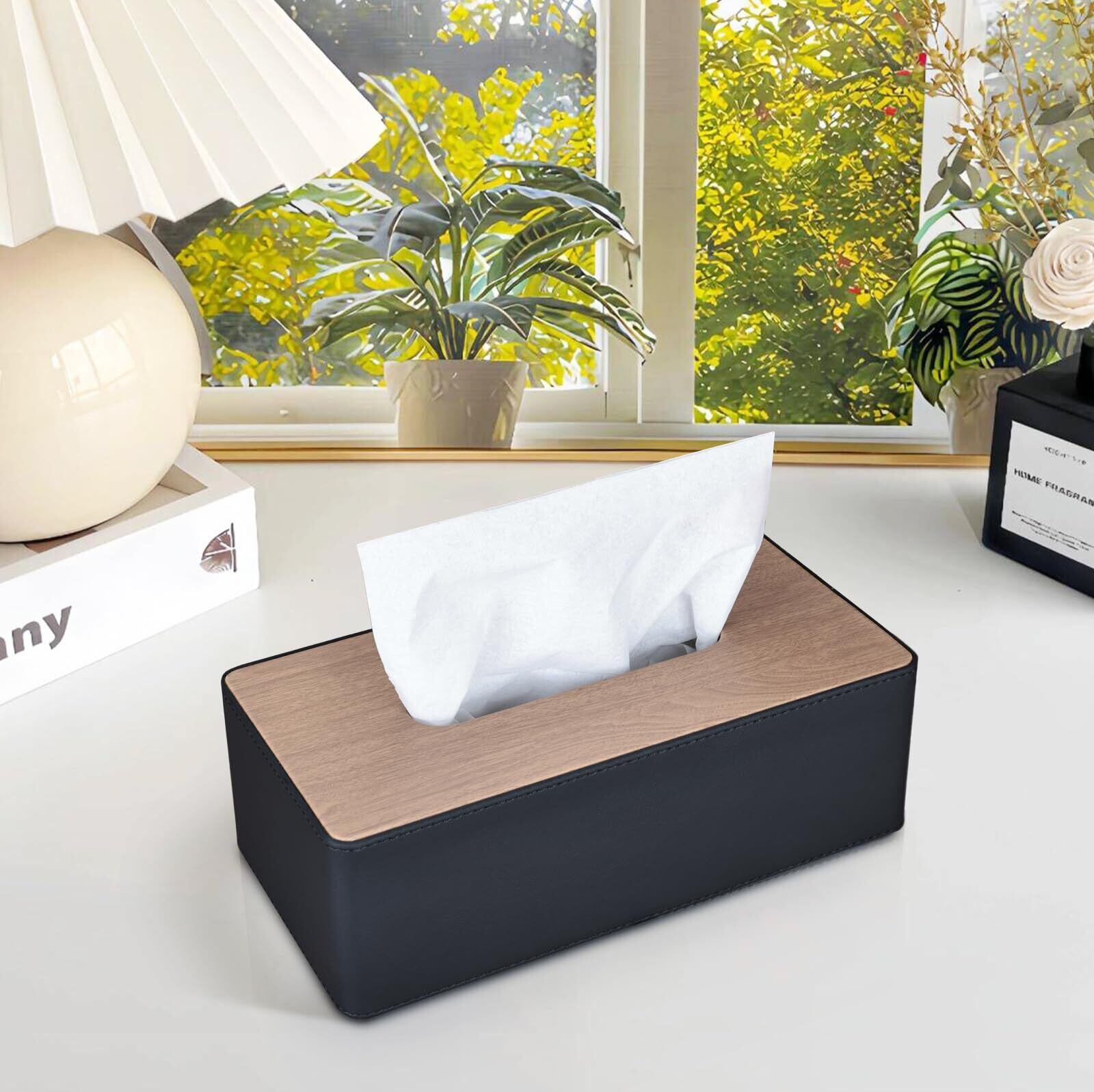 KINGFOM ティッシュケース モダンデザイン ティッシュボックス 高級PUレザー 3色展開 家庭用&オフィス用 多機能ティッシュカバー (黒メープル)