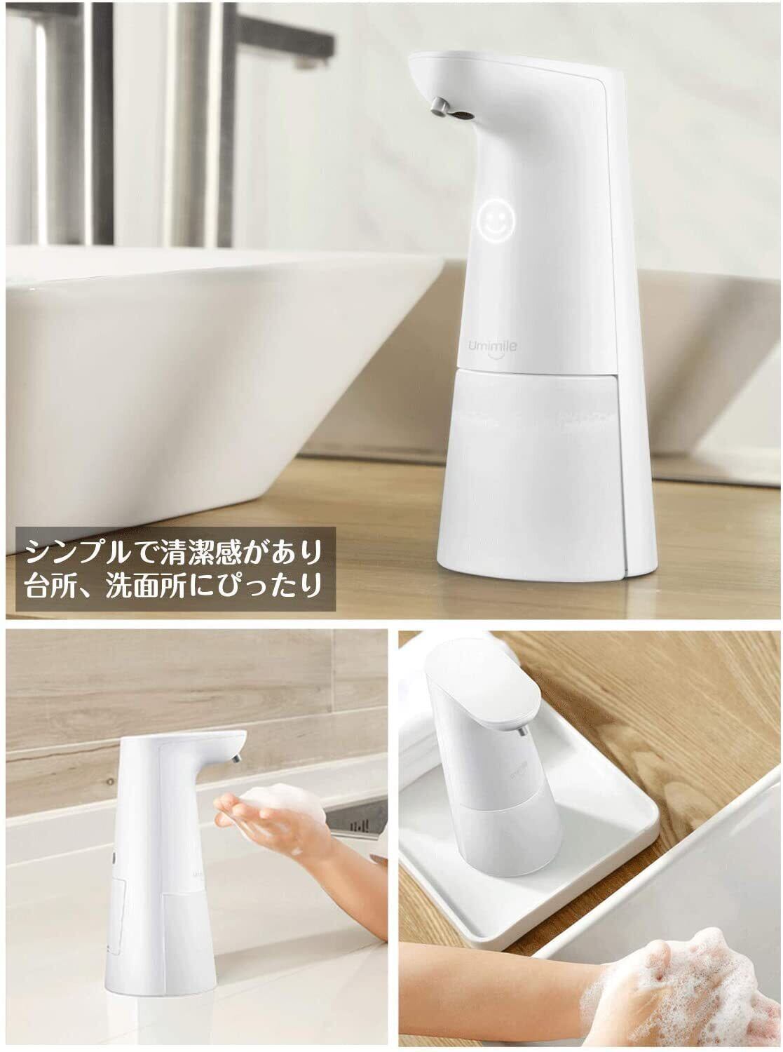 Umimileユミマイル ソープディスペンサー 泡 自動 ハンドソープディスペンサー オート センサー 吐出量2段階調整 250ml 電池式 ハンドソープ 食器用洗剤 キッチン 洗面所などに適用