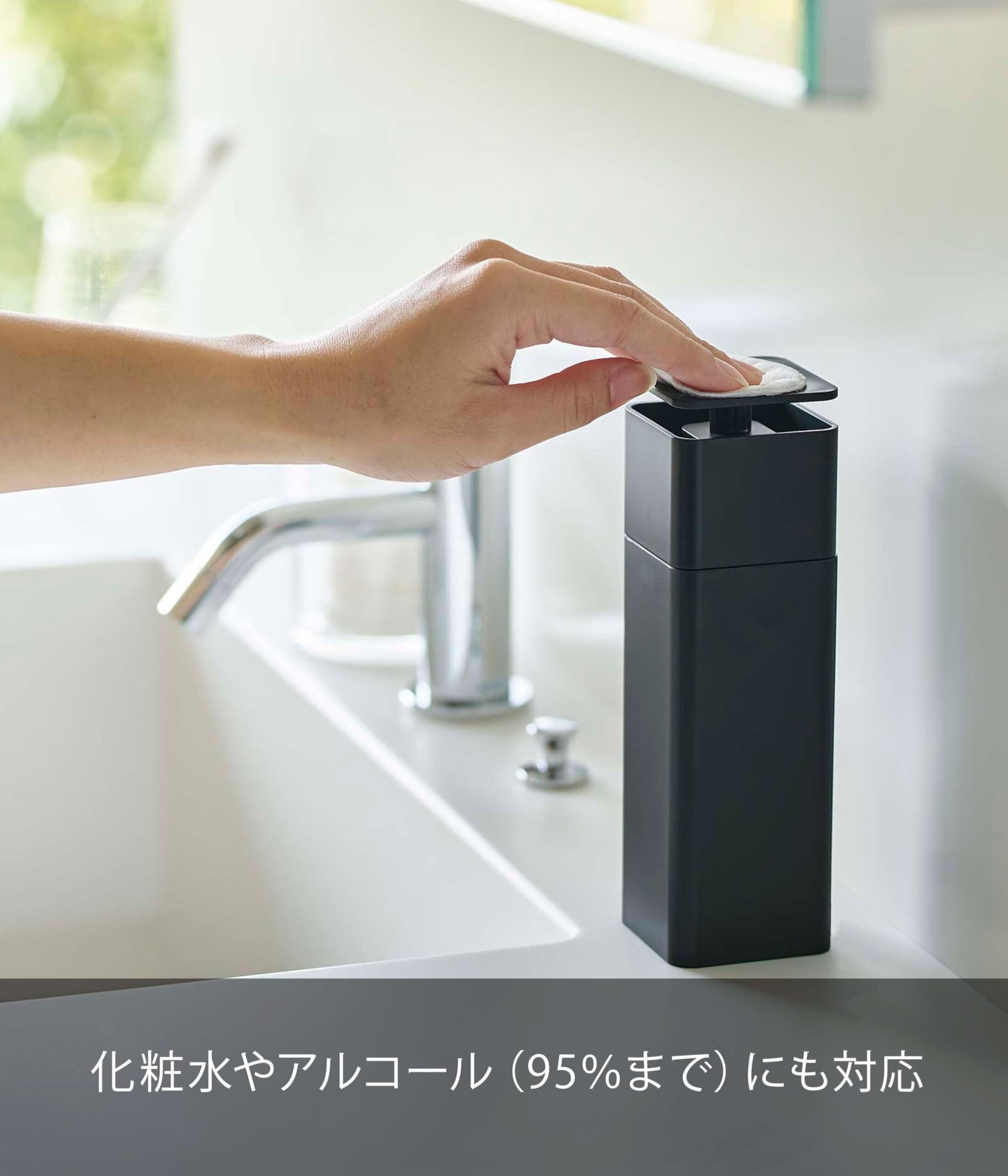 山崎実業(Yamazaki) 片手で出せる ディスペンサー ブラック 約W5.5XD5.5XH18.5cm タワー 洗剤 化粧水 アルコール対応 お手入れ簡単 5214