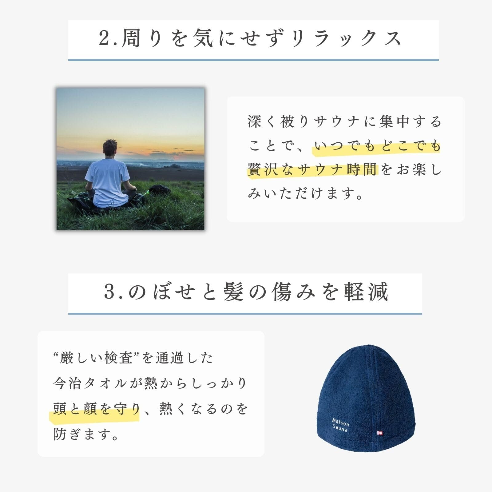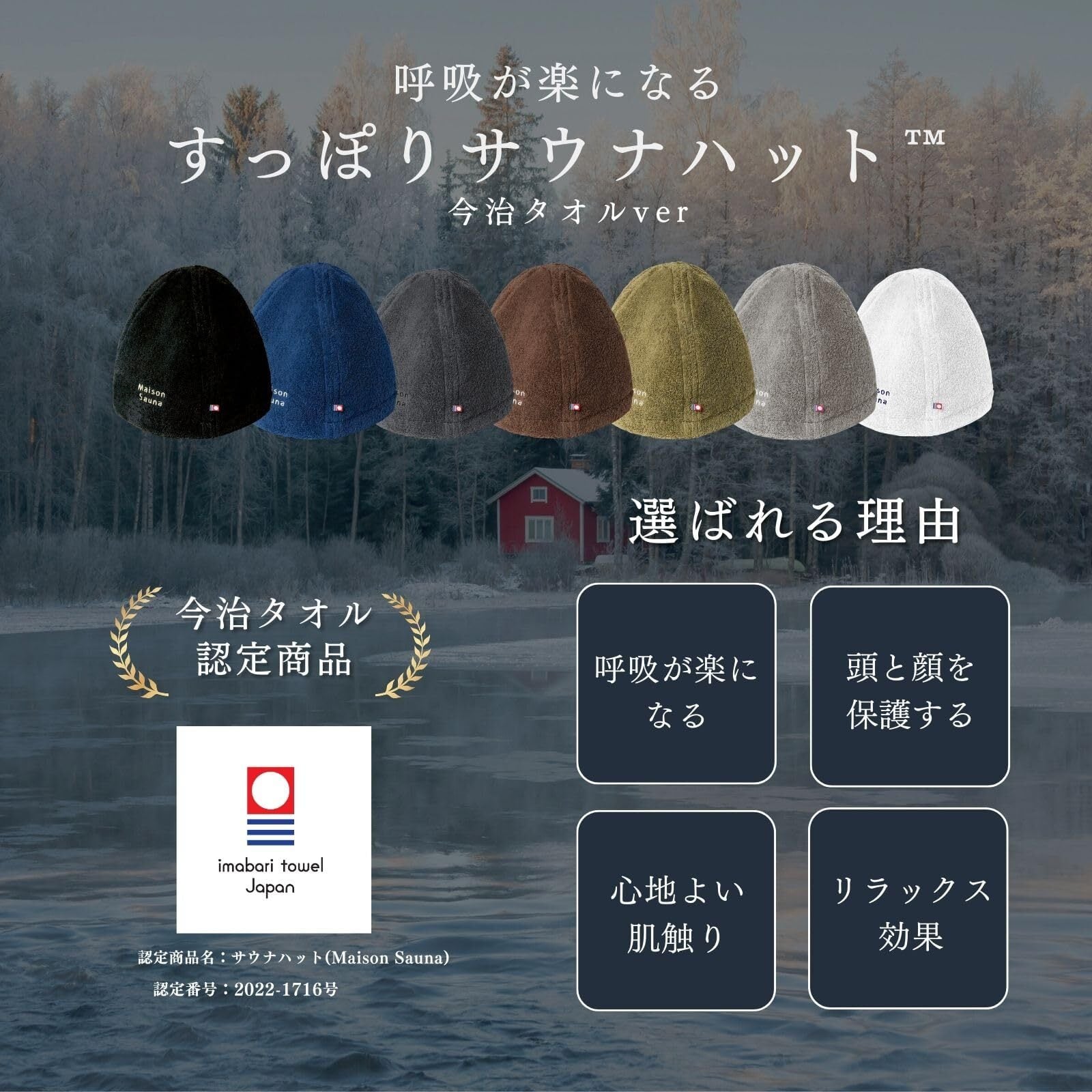 [Maison Sauna] サウナハット 今治タオル 【呼吸が楽になる】 髪の傷み防止 深くかぶれる 簡単洗濯 メンズ レディース 大きめ おしゃれ のぼせ防止