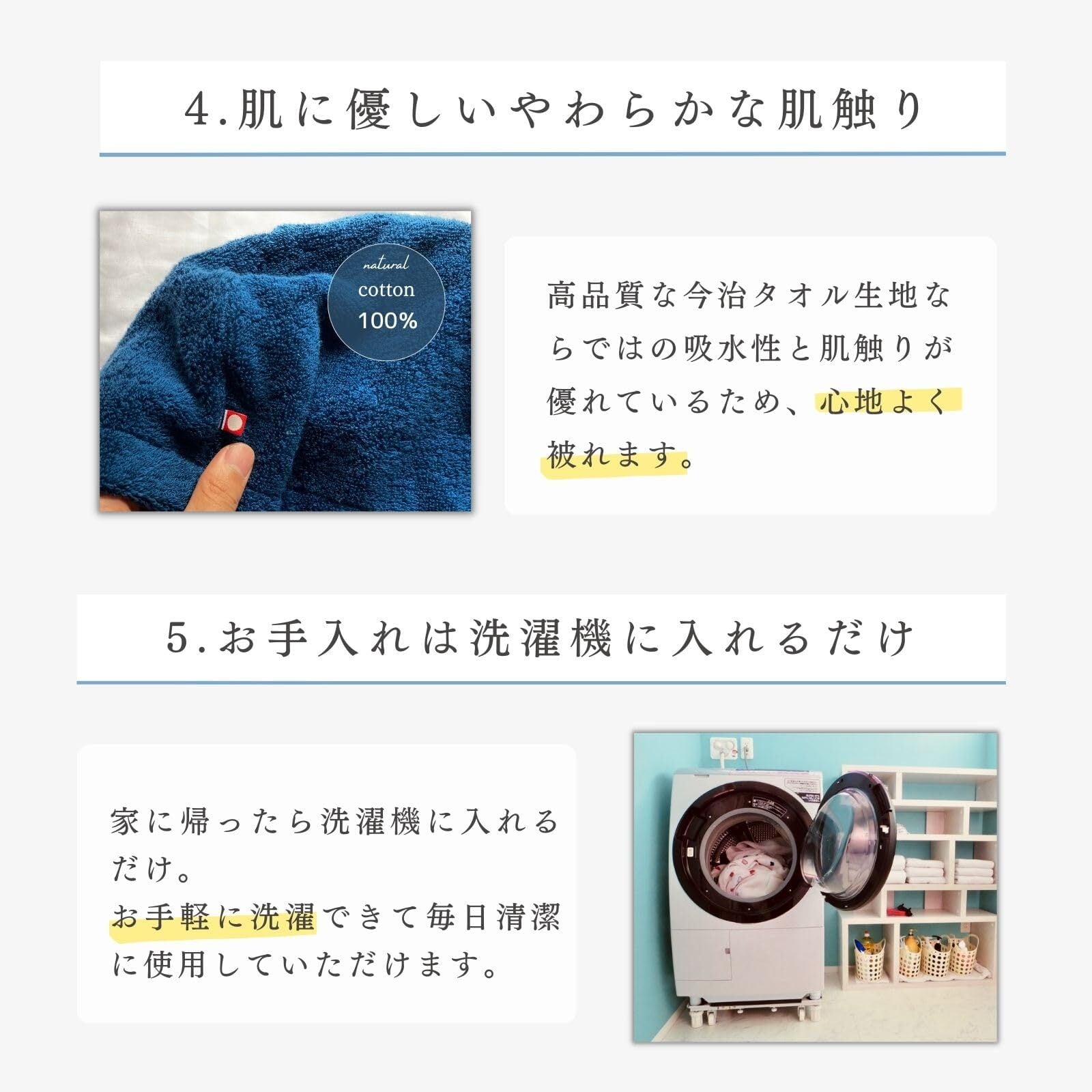 【お手入れは洗濯機に入れるだけ】お手入れは洗濯機に入れるだけなので、お手軽に毎日清潔に使用していただけます。