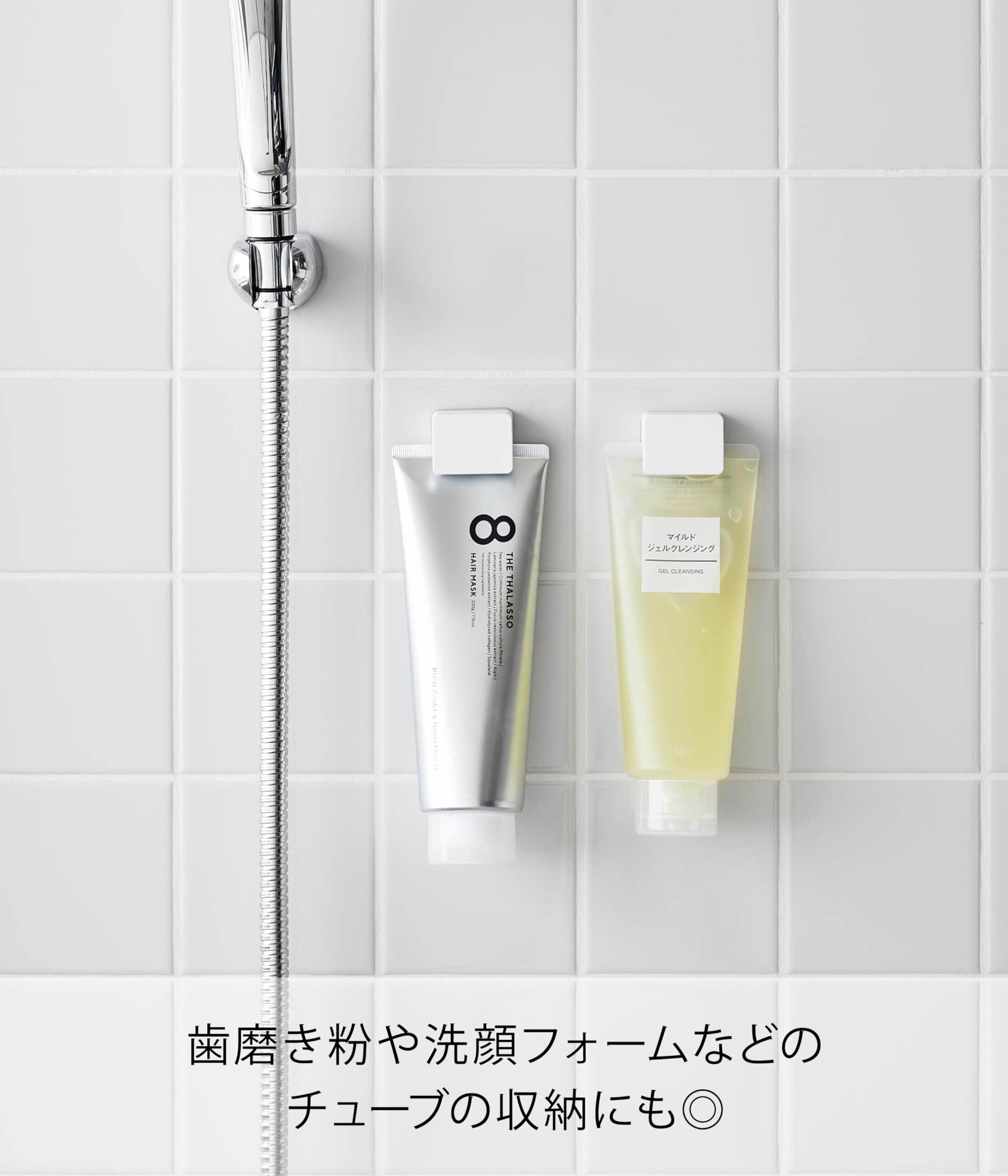 山崎実業(Yamazaki) フィルムフック 差し込み式 歯ブラシ & チューブホルダー W4 2個組 ホワイト 本体:W4×D2.7×H6cm(1つあたり・フィルムフック含まず) タワー tower 浮かせる収納 歯ブラシホルダー 歯ブラシスタンド 1493