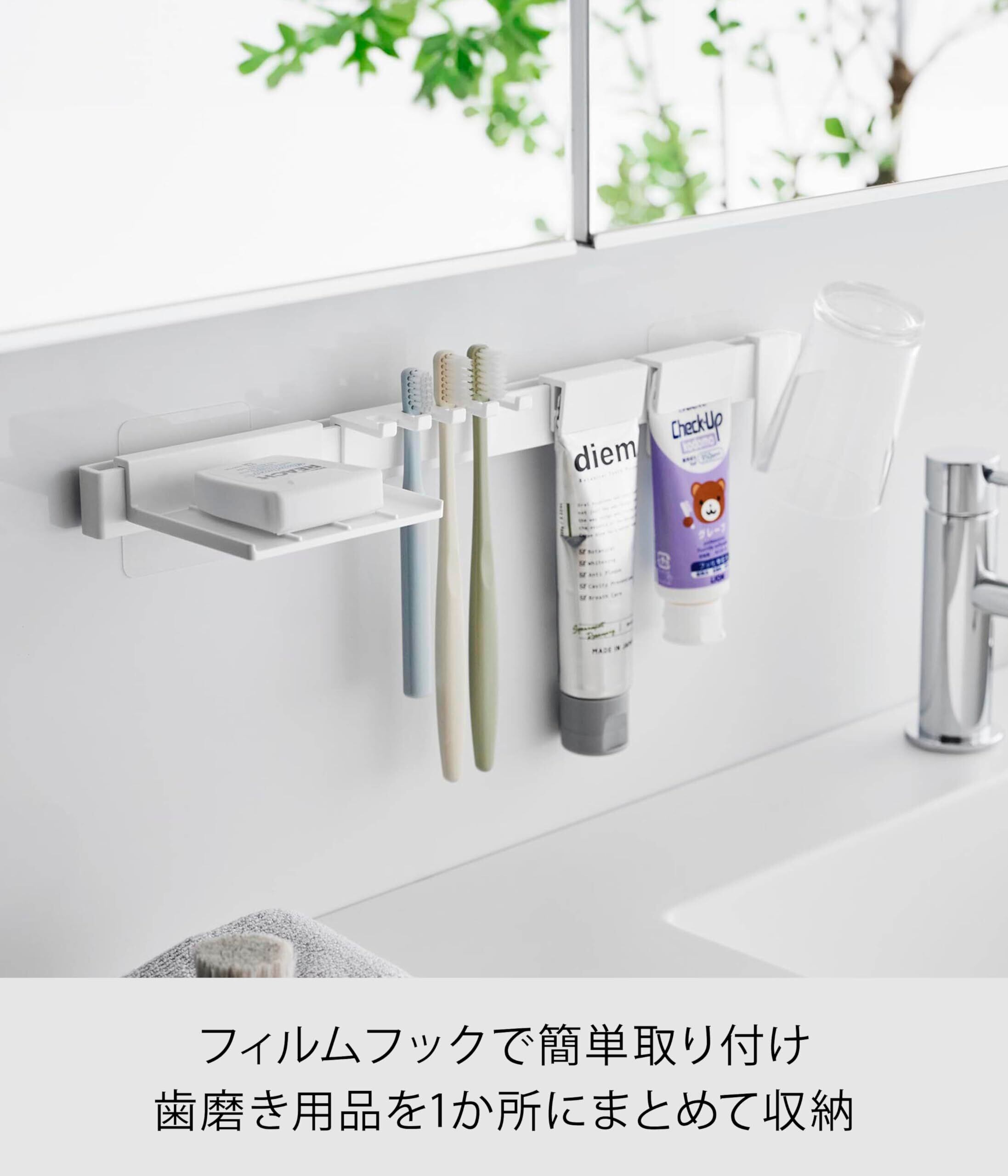 山崎実業(Yamazaki) フィルムフック 歯ブラシ & 歯磨き用品 収納セット ホワイト 本体(各パーツ取り付け時):W38×D9×H6cm(フィルムフック含まず) タワー tower 浮かせる収納 歯ブラシホルダー 歯ブラシスタンド タンブラーホルダー 1879