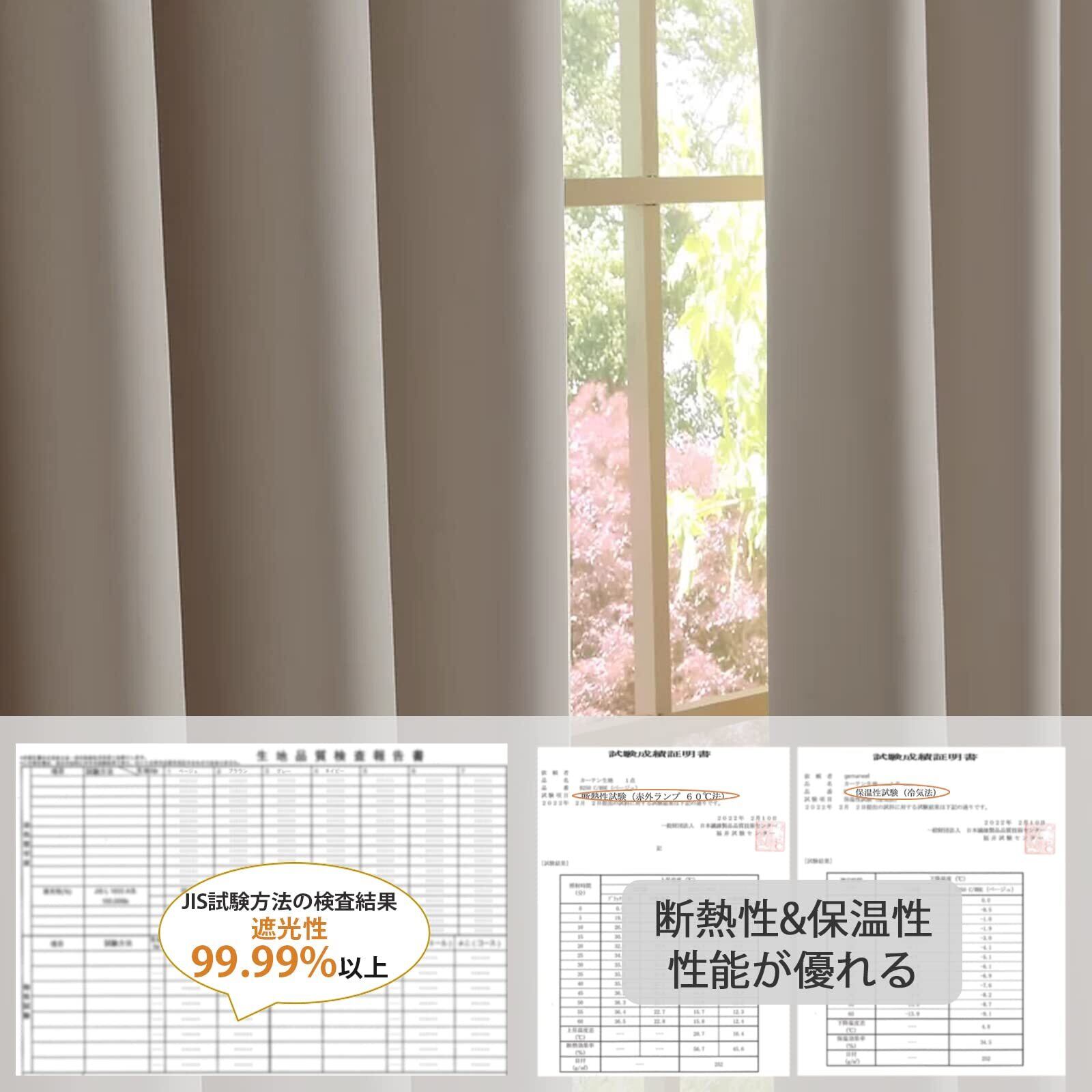 Gemarwel 一級 遮光 カーテン 178cm丈 100cm幅 2枚組 既成 ベージュ 保温 昼夜目隠し おしゃれ 防寒 冷気遮断 断熱 子供ルーム 部屋 居間 寝室 洗濯機対応