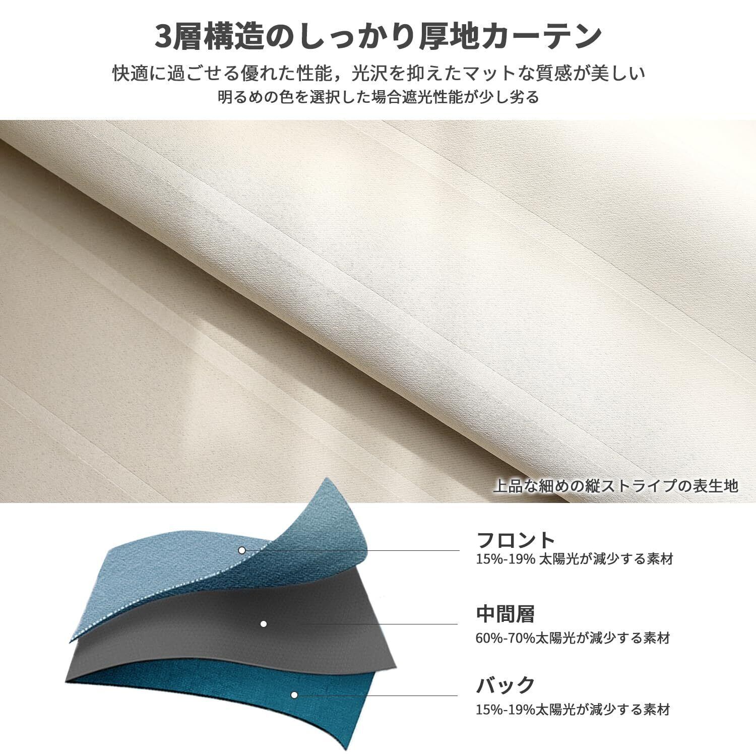 AZRA カーテン 2枚組 遮光 1級 99.9%以上 幅100cm×丈178cm 縦ストライプ 光沢があり柔らかな質感 厚手 優しい色合い おしゃれ 北欧 断冷 保温 防寒 省エネ UVカット 小窓 出窓 寝室 リビング用 3層構造 形状記憶 洗える シンプル 無地 タッセルとフック付き すぐに使える (カーテン2枚) ベージュ