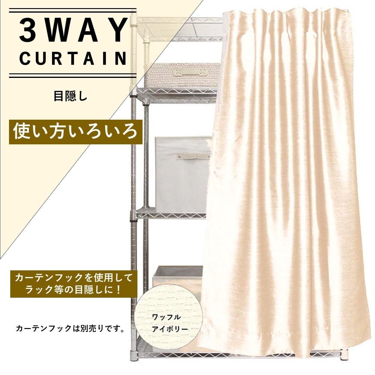 【商品特徴】カーテンフックを取り付けて「カーテン」として、突っ張りポールを使用して「目かくし&間仕切り」としてお使いいただけるカーテンとなります。