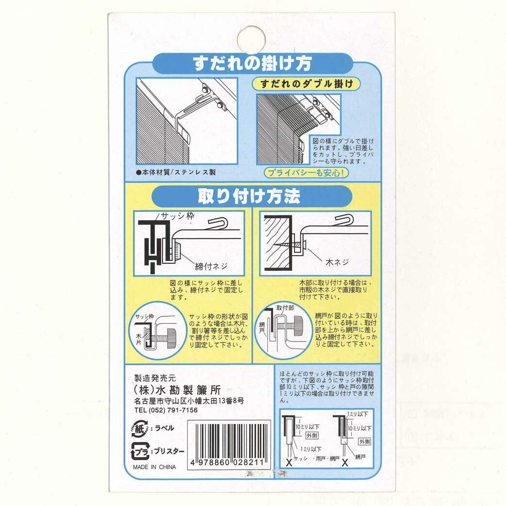 水勘製簾所 すだれ ハンガー ステンレス サッシ窓用 取付金具 2個セット 耐荷重3Kg(2個使用時)