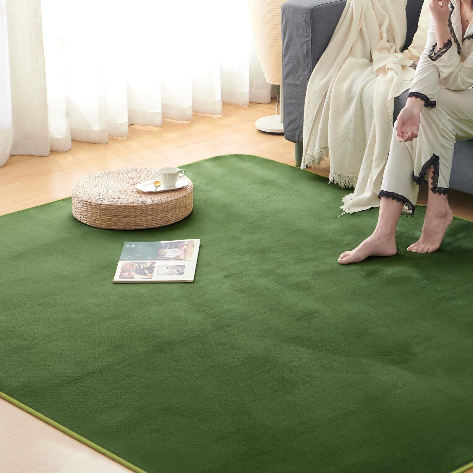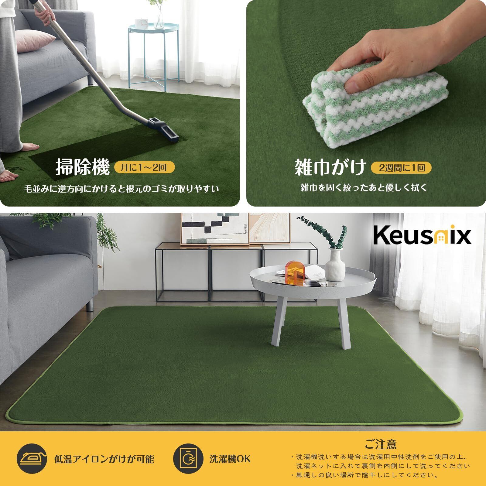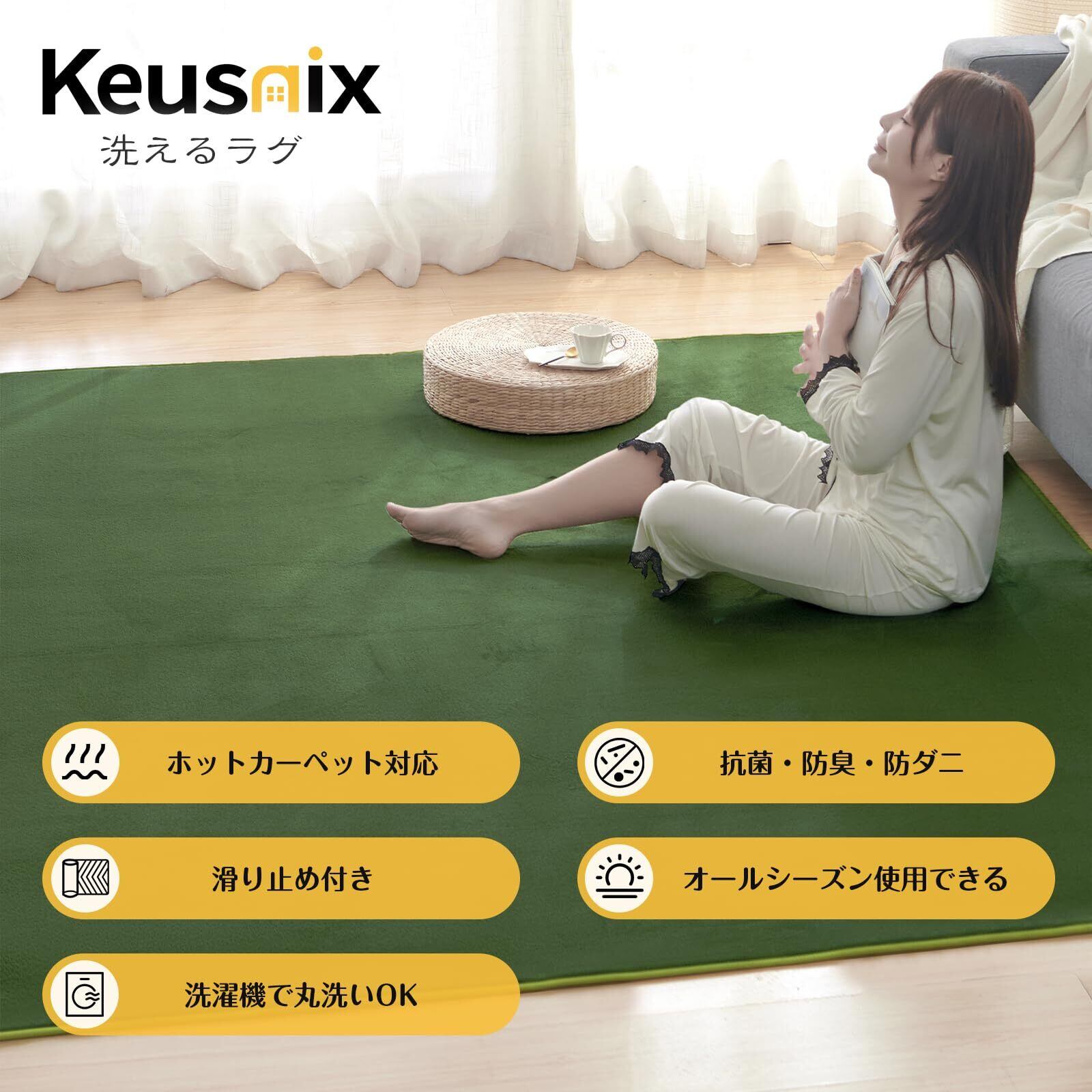 Keusnix カーペット ラグ ラグマット滑り止め付 洗える 135×185cm 約1.5畳 絨毯 防ダニ 抗菌 防臭 オールシーズン快適に使用 床暖房 ホットカーペット対応 ふわふわ肌触り フランネルラグ 無地 グリーン