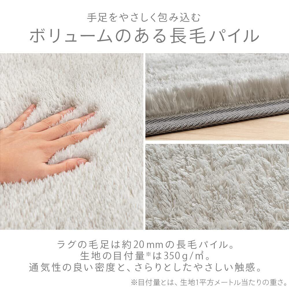 ラグの毛足は約20mmの長毛パイルで、手足を優しく包み込んでくれるようなボリューム感。