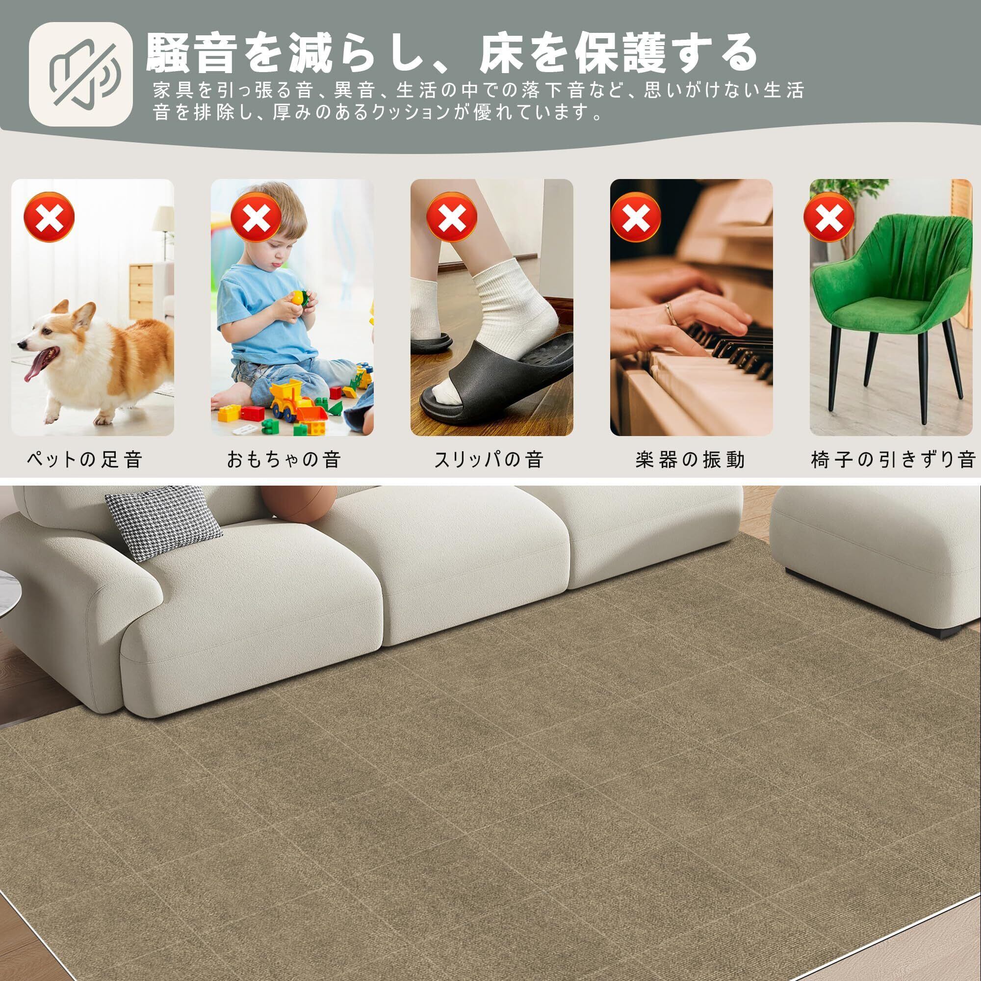 【掃除がやすい】超強な吸着力ので、掃除機をかけても、掃除ロボットをかけても、ずれにくくストレスがありません。それとも、汚れた部分だけ外れして洗えます。スポンジなどを使うとさらに効果的です。(洗濯機使用を勧めません)。