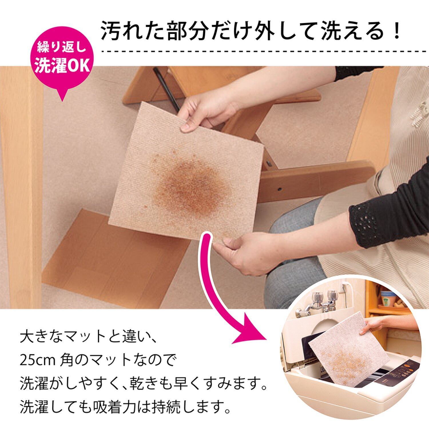 おくだけで取り付け、取り外しも簡単なタイルマット。生地が薄いので、つまずきにくく、扉の開閉の妨げにならないので小さなお子様や車椅子のお年寄りの方にもお使い頂けるバリアフリータイルマットです。スペースに合せて組合せ自由に敷いて頂けます。裏面は吸着加工で掃除機を使っても吸い上がらないから、お掃除もラクラク。汚れたマットだけお洗濯できます。ハサミで手軽にカットでき、カットしてもほつれません。1枚25cm角でベージュとライトベージュの50枚セットです。