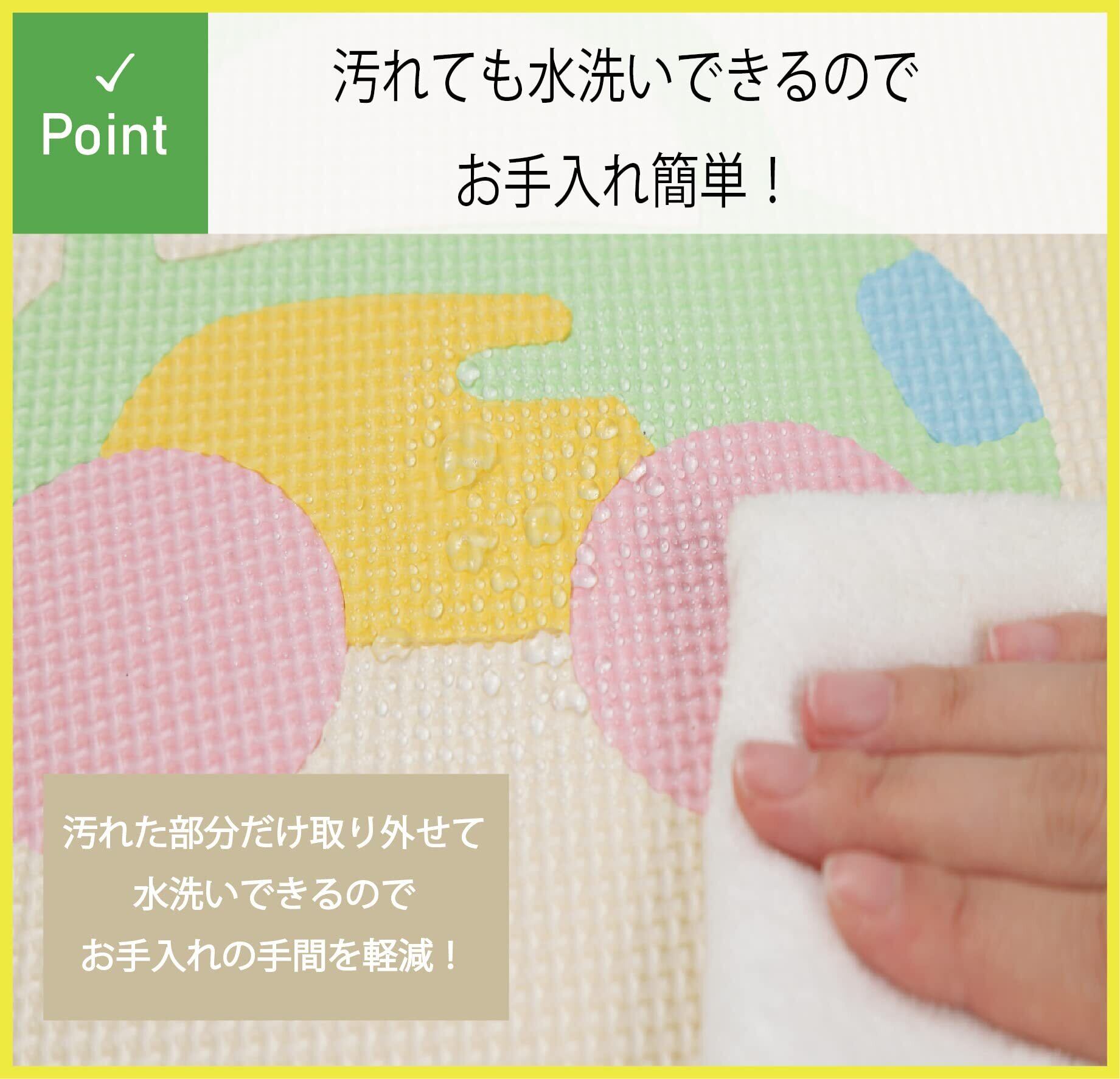 耐水性があり、ジュースなどをこぼしたときでもサッとひと拭きでキレイに。また、しつこい汚れでも、汚れた部分だけはずして水洗いOK!