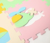 子ども部屋やリビング、保育施設の床など、お子様のいる場所に気軽に敷いて使えるジョイントマット。