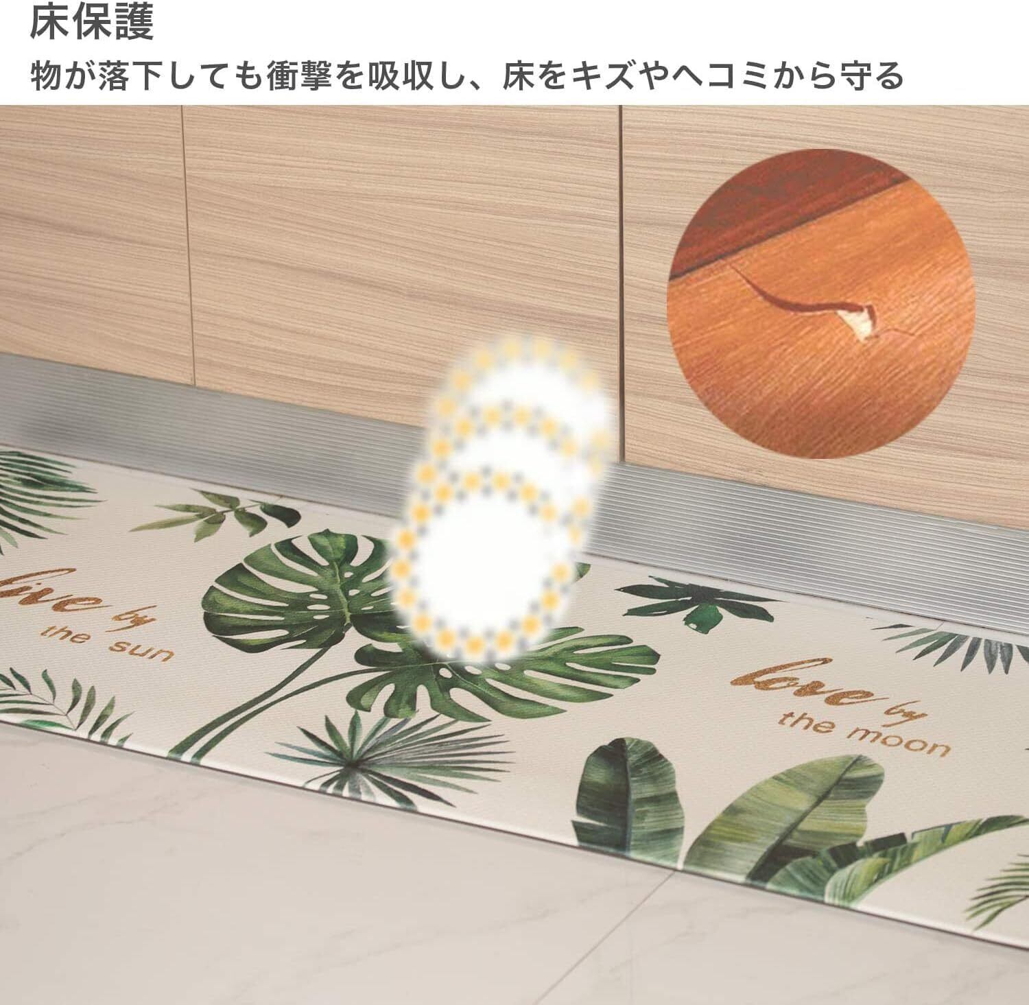 【厚いPVC】足が疲れにく設計、もちもちの踏み心地でクッション性が高く台所マットです。長時間の立ち仕事も疲れにくい。このマットは素足でも、スリッパを履いたままでもいいです。物が落下しても衝撃を吸収し、床をキズやヘコミから守ります。