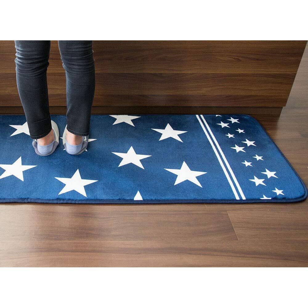 アイリスプラザ キッチンマット 台所マット 玄関マット 60×180cm 洗える 防ダニ加工 ふわふわ フランネル ホットカーペット対応 スターブルー FNR-RCK-6018