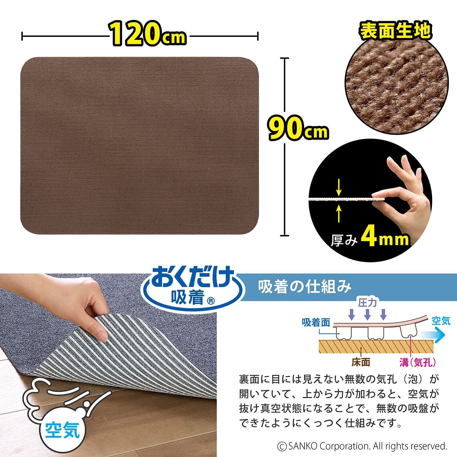 サンコー チェアマット ずれない ゲーミング デスクマット 床保護 マット 滑り止め おくだけ吸着 90×120cm ブラウン 日本製 KL-10
