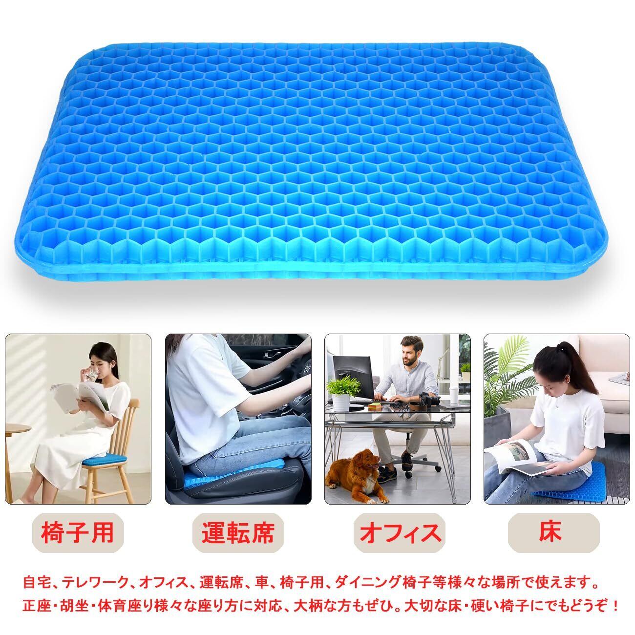 【高耐久性】上質なゲル素材を採用し、線も多いので、耐久性はより高いです。自宅、テレワーク、オフィス、運転席、車、椅子用、ダイニング椅子等様々な場所で使えます。正座・胡坐・体育座り様々な座り方に対応、大柄な方もぜひ。大切な床・硬い椅子にでもどうぞ!