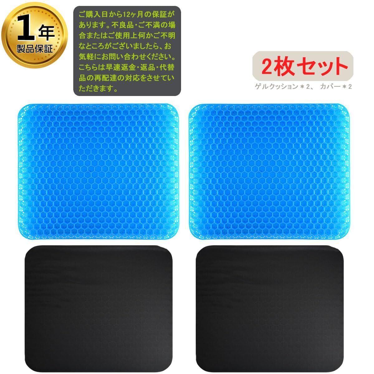 ゲルクッション 無重力 クッション 高通気性 座布団 四季通用 カバー付き ジェルクッション 二重構造 ハニカム構造 蒸れない 在宅勤務 テレワーク オフィス 車 椅子 自宅用 美尻 洗える (2個セット)