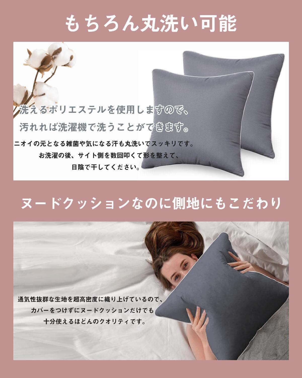 AYO クッション 中身 45×45cm 2個セット(他のサイズもある) 潰れない ソファークッション ヌードクッション 圧倒的ボリューム感 背もたれ 柔らかい 丸洗い可能 抱き枕(グレー)