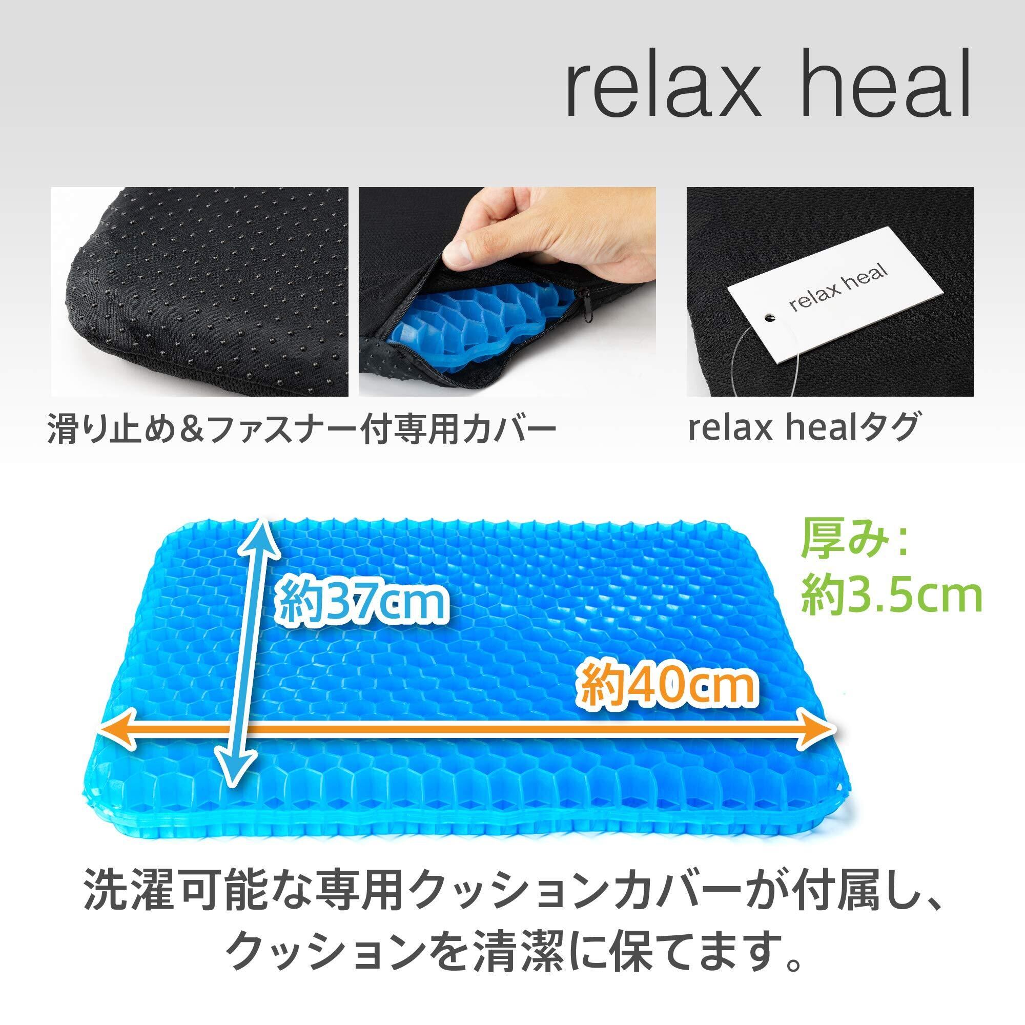 【選べる4カラー】relaxheal ゲルクッション クッション 椅子 お尻が痛くならない ジェルクッション 車 座布団 正規品 40×37cm (ブラック)