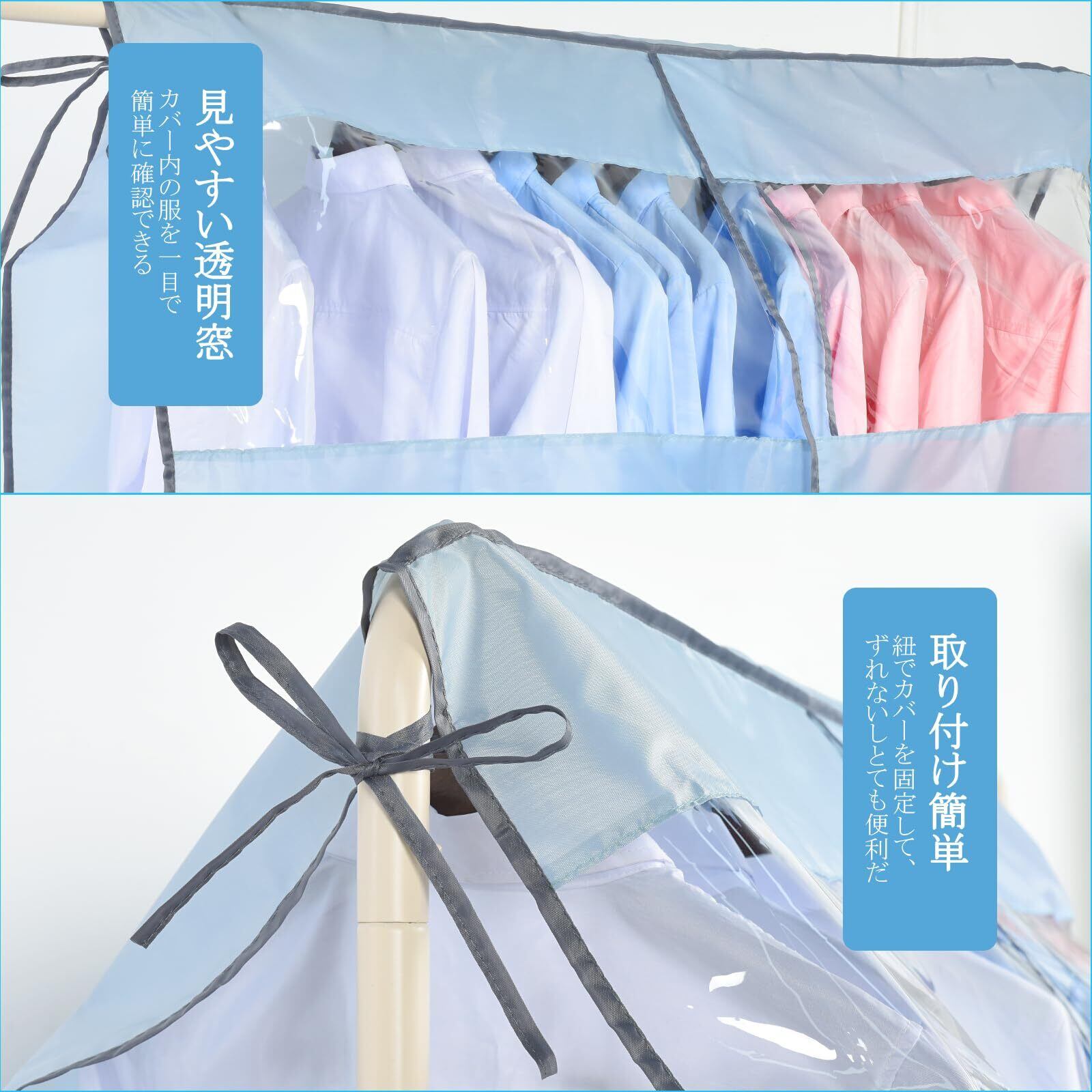 OTraki ハンガーラックカバー 110cm幅 120cm高さ オックスフォード素材 ハンガーカバー 防塵 透明窓付き 洋服カバー 防虫 マジックテープ開閉 スーツカバー 高耐久 固定紐 パイプハンガーカバー 通気 ほこり防止 Dust cover オールドブルー