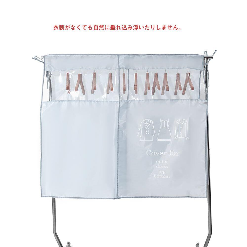 【マジックテープで洋服の取り出し簡単】ラックカバーの真ん中にはマジックテープが設けられ閉め開けがとても便利です。衣類カバー内に掛けてあるスーツや制服等が日にちが経つに連れ積もってくるホコリから衣類を守ってくれるしカバーからの取り出し取り入れも便利です。