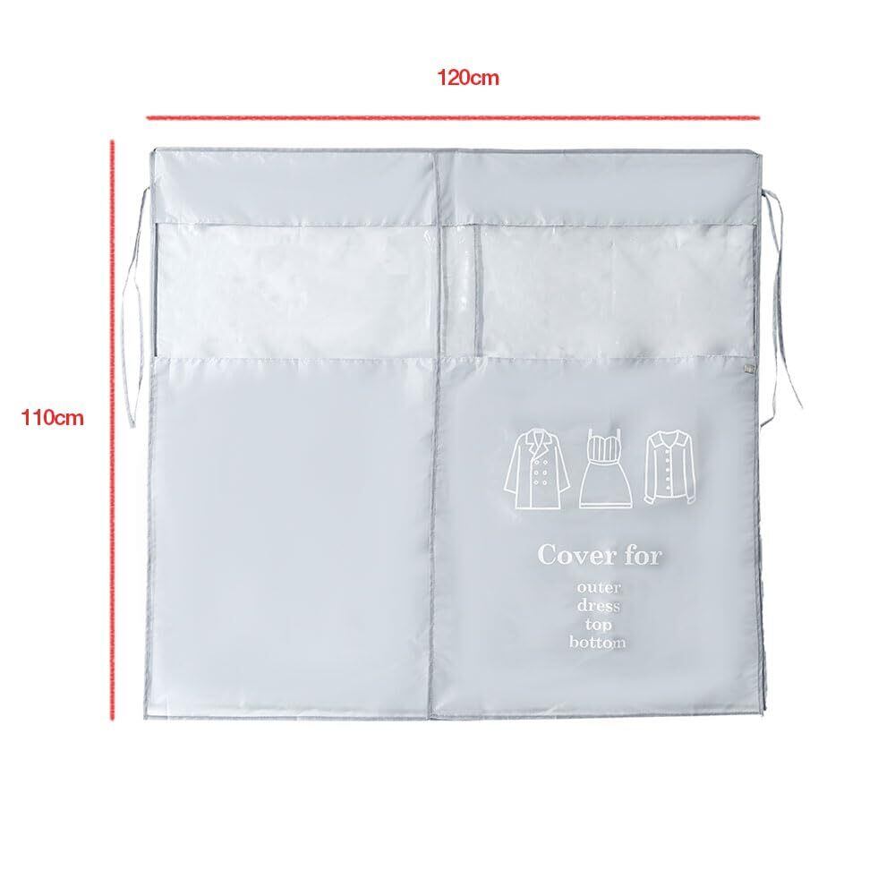 良選オックスフォード生地洗い可能 グレー 衣類カバー ワイドサイズ 120cm幅 110cm長さ 透明窓付き 洋服カバー 押入れ洋服防塵カバー パイプラック収納カバー マジックテープ付き 閉め開けが楽々可能 両サイドズレ防止紐付き