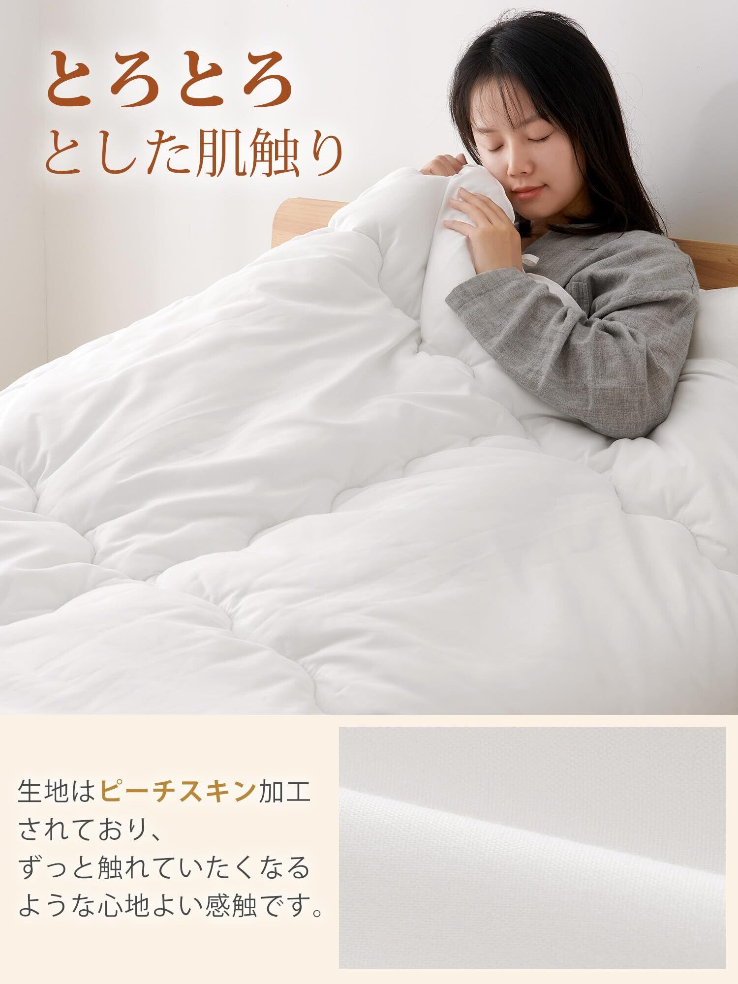 【1枚でオールシーズン快適に】軽量でありながら、保温性に優れた素材を使用しているため、寒い冬の夜でも暖かく、春や秋には心地よい寝心地を提供します。