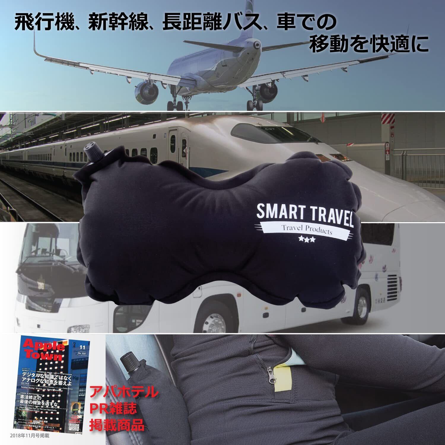 SmartTravel 腰まくら 携帯 飛行機 クッション 海外旅行 便利グッズ 腰枕 持ち運び 車 夜行バス 快適グッズ