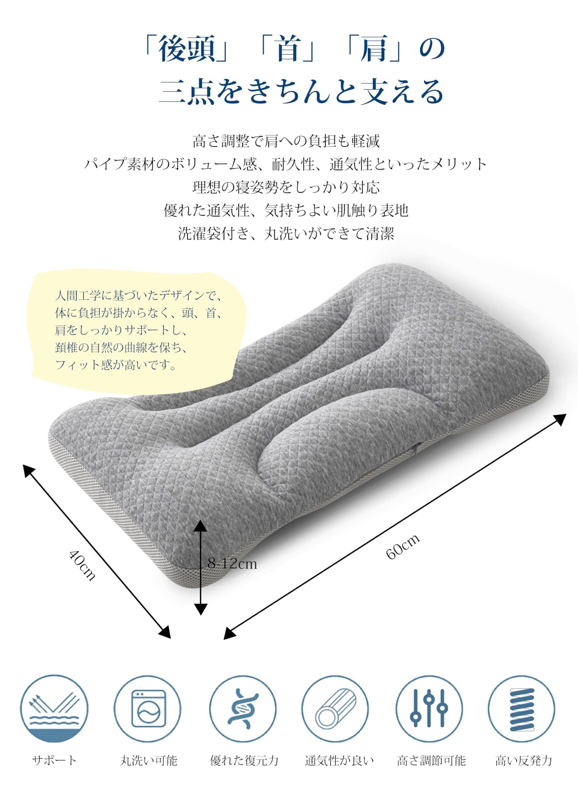 AYO 枕 パイプ枕 低反発 まくら 横向き対応 丸洗い可能 肩こりまくら 安眠枕 高さ調整可能 仰向き 横向き ホース枕 首肩フィット 快眠枕 プレゼント 40*60cm