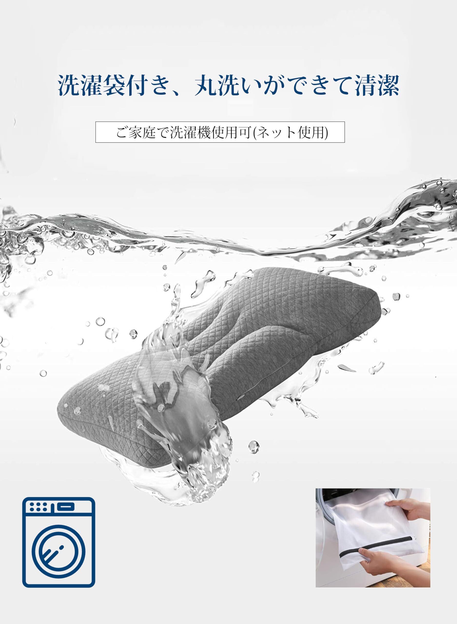 【洗濯ネット付き、丸洗いができ】枕、補充パイプ、洗濯袋、梱包箱が付属しております。人は寝ている間にコップ1杯分の汗をかくと言われています。特に髪の毛がある頭は温度が高く、蒸れやすくなります。枕本体も洗濯ネットに入れて洗濯機で丸洗いてきるので、いつも清潔にお使いいただけます。洗濯後は風通しの良い場所で陰干しをして<ださい。
