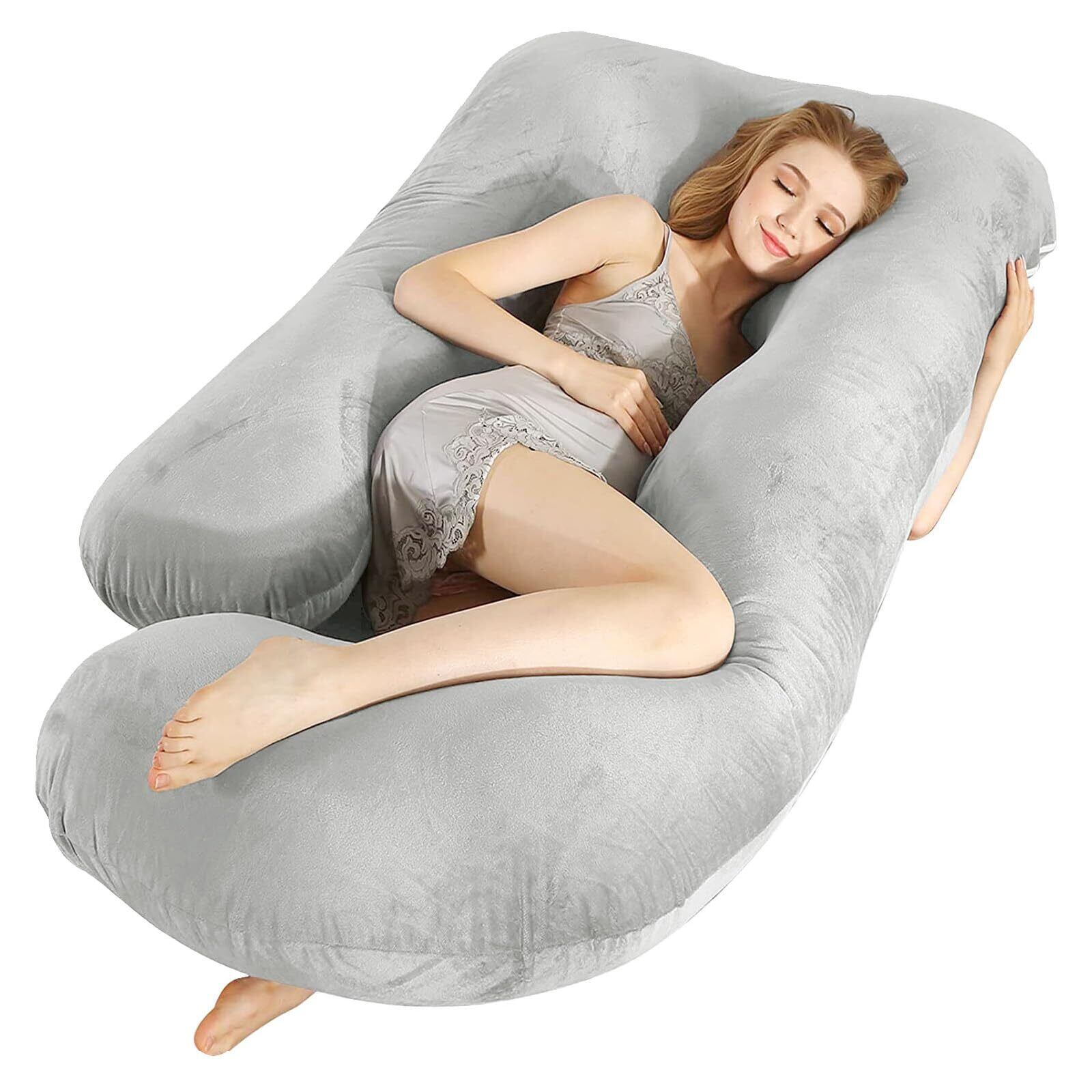 抱き枕 妊婦 だきまくら 低反発授乳クッション 多機能u字枕 マタニティ抱き枕 上半身を包み込むまくら ポリエステル 体圧分散 腰楽 カバー付き ライトグレー ROCYJULIN