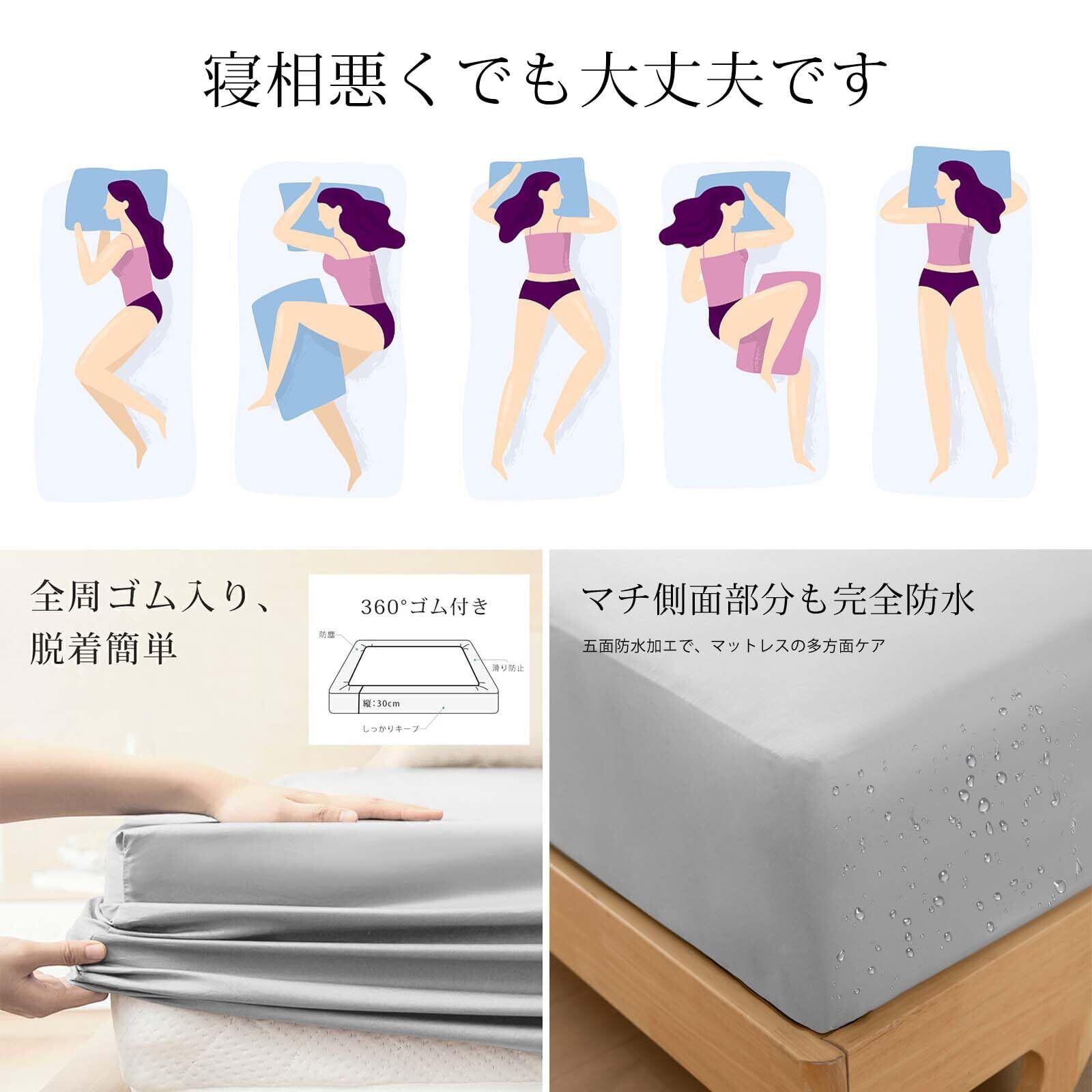 Vallein 防水シーツ 側面完全防水 シングル ボックス 全面防水 ボックスシーツ ダブル セミダブル クイーン おねしょシーツ 防水 大人用 キング 赤ちゃん ベッドシーツ 介護用シーツ ベビー 保育園 介護用 ペット 防ダニ 丸洗い可能(シングル·ライトグレー·100*200)