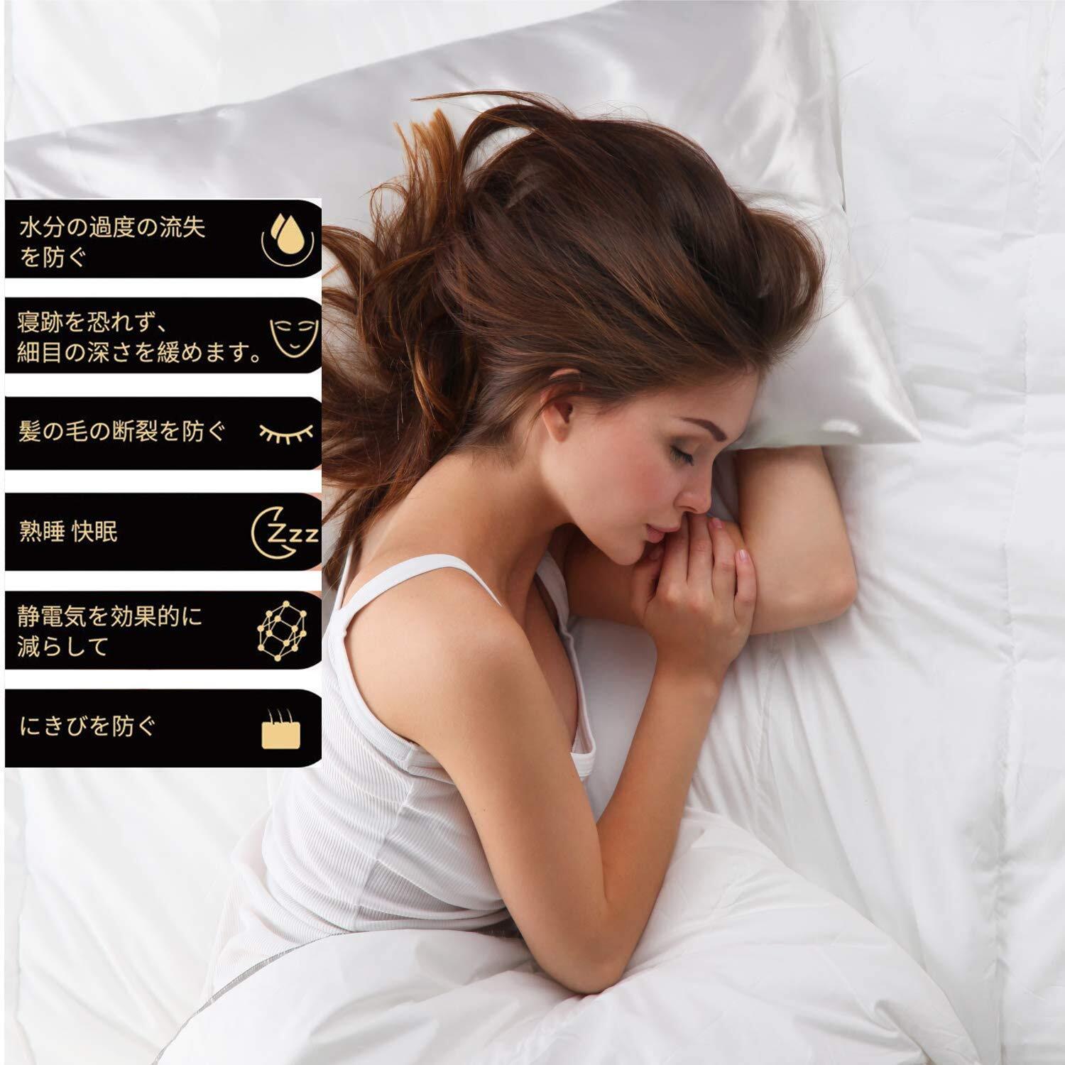 枕カバー 2枚セット サテンの枕カバー 封筒式ピローケース 美肌 美髪 両面シルクタイプ 滑らかな材質 静電気防止 (43*63, 白い)