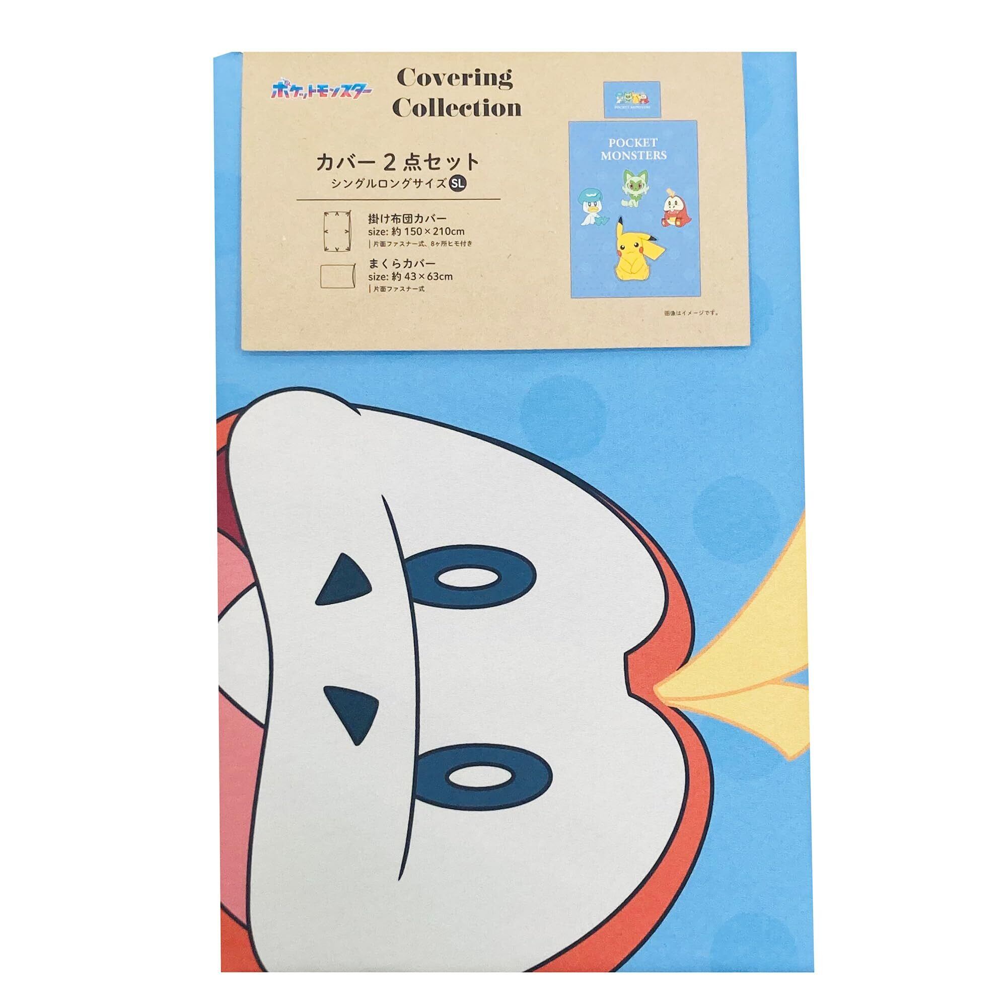 約43x63cm枕カバーと約150x210cmシングルロングサイズ掛布団カバーの2点セット ( ピカチュウ ニャオハ ホゲータ クワッス )