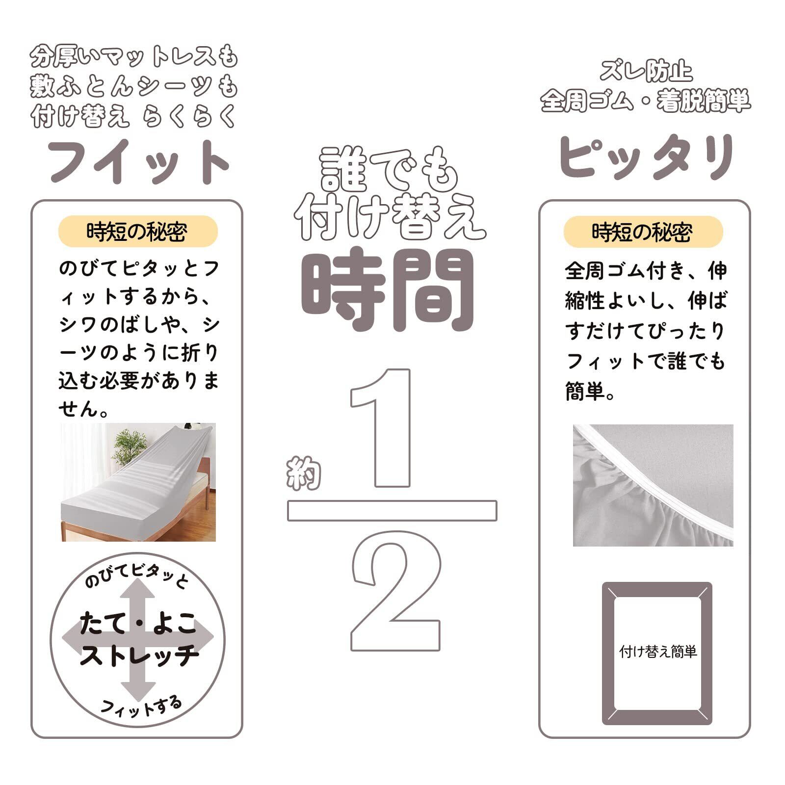 【伸縮性抜群・適用幅広い】『3Dストレッチ』特性を持ち、タテにもヨコにも伸びるので、マット適用サイズ幅広いです。アイロンせずシワ一つもない、きれいなベッドに変身できるボックスシーツです。