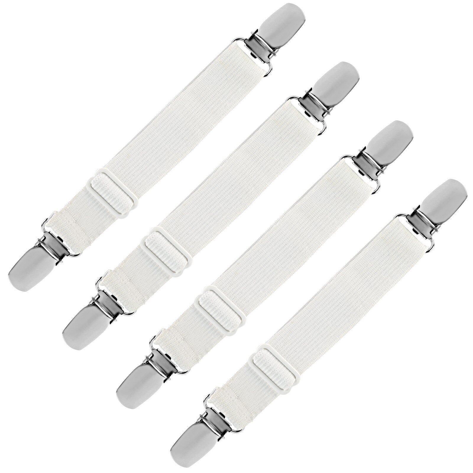 LIHAO ベッドシーツクリップ ズレ防止 クリップ 布団クリップ 調節可能 シーツ 布団 滑り止め シーツ固定 4本入 アイロン台カバークリップ 白 ズレ防止クリップ ソファー シーツ ズレ防止