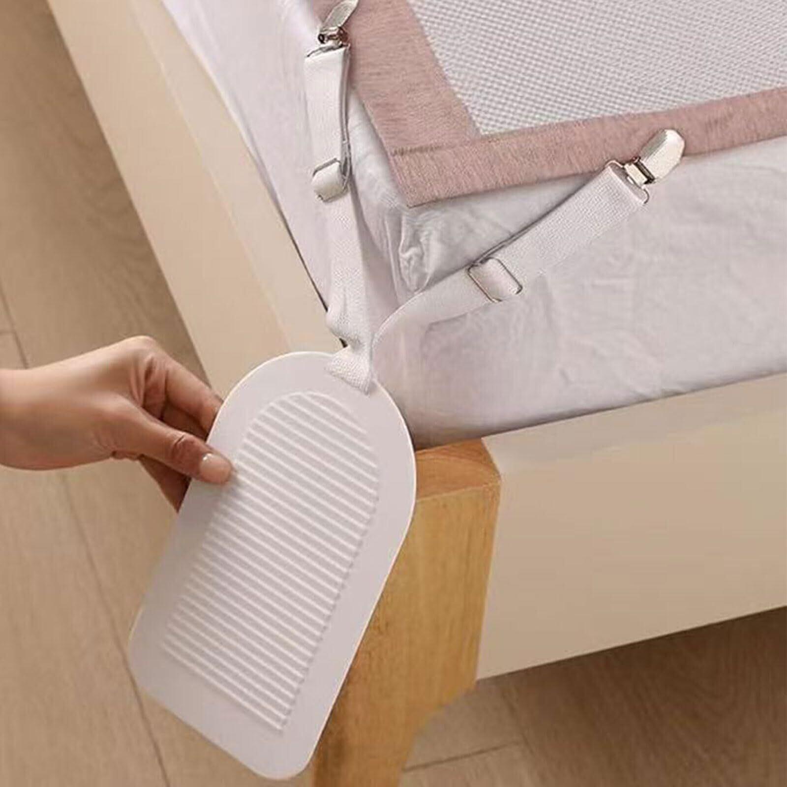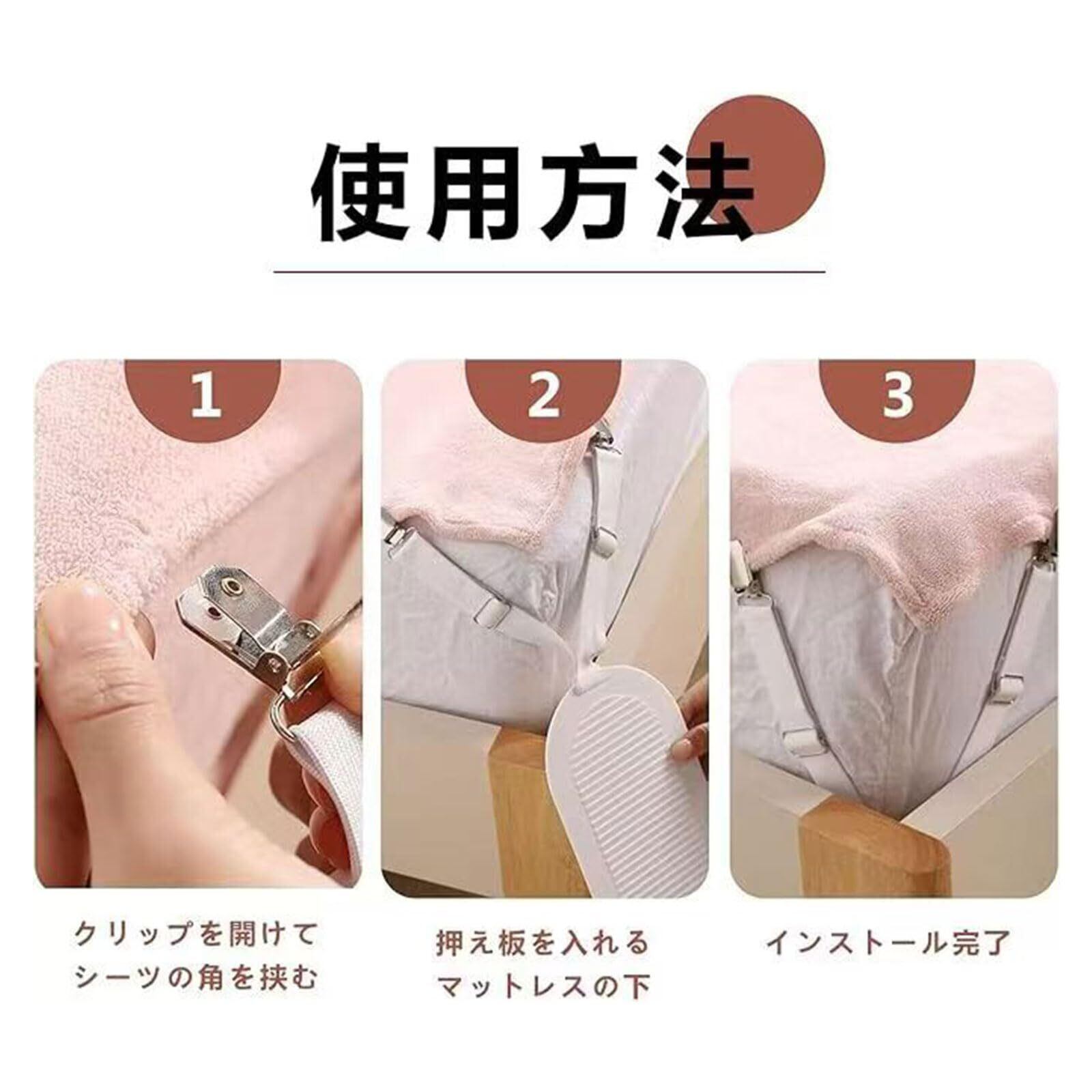 取付が簡単で、この布団 クリップの設計は使用の利便性を考慮して、取付ステップは非常に簡単で、固定クリップを開けて、シーツの角をクリップ口に入れて、クリップトップシートで押して固定して、更に押え板をマットレスの下に入れて、簡単にシーツの固定を完成することができて、複雑な操作やツールを必要としません
