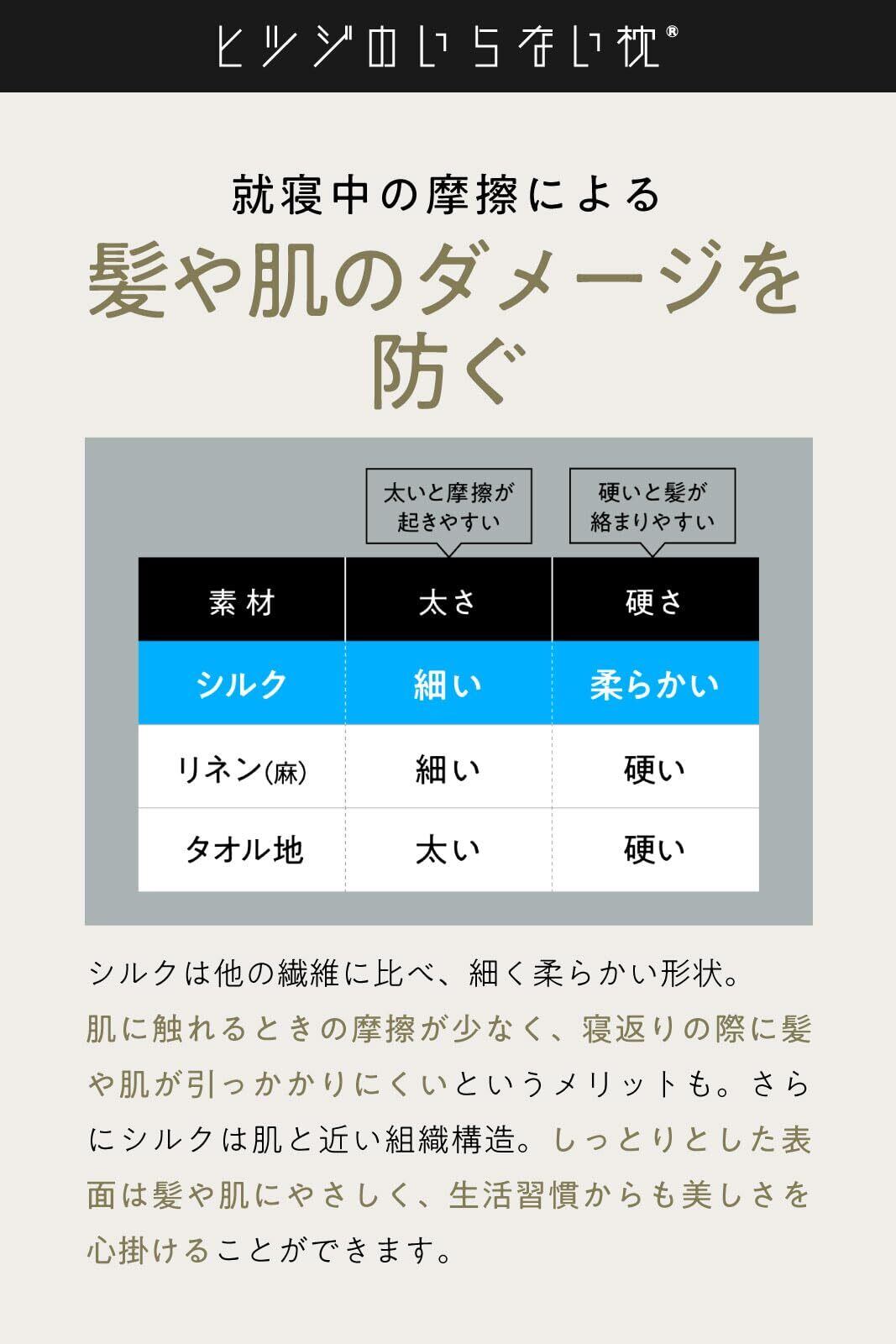 【就寝中の摩擦による髪や肌のダメージを防ぐ】肌に触れるときの摩擦が少なく、寝返りの際に髪や肌に引っかかりにくというメリットもあります。