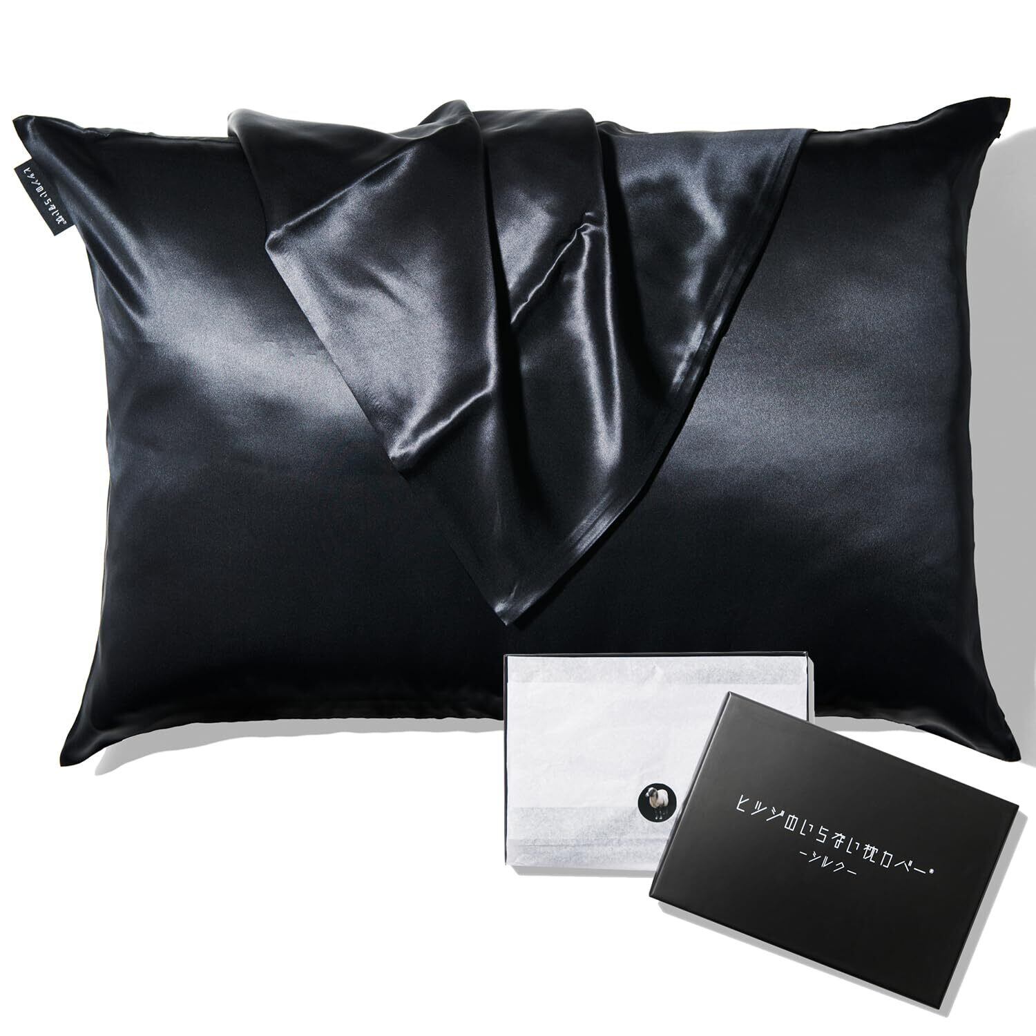 ヒツジのいらないシルク枕カバー 洗える シルク100% ブラック