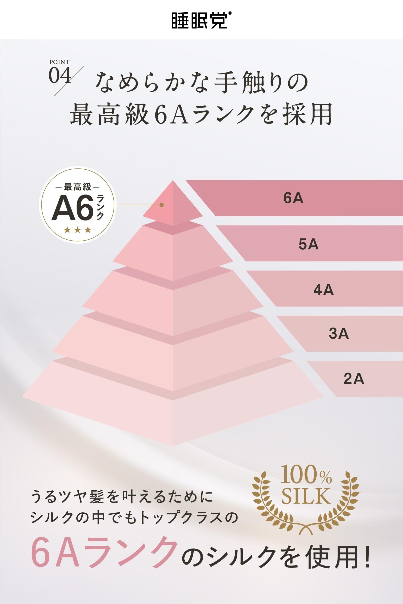 【なめらかな手触りの最高級6Aランクシルク】うるツヤ髪を叶えるため、表面は6Aランクシルクを100%使用しています