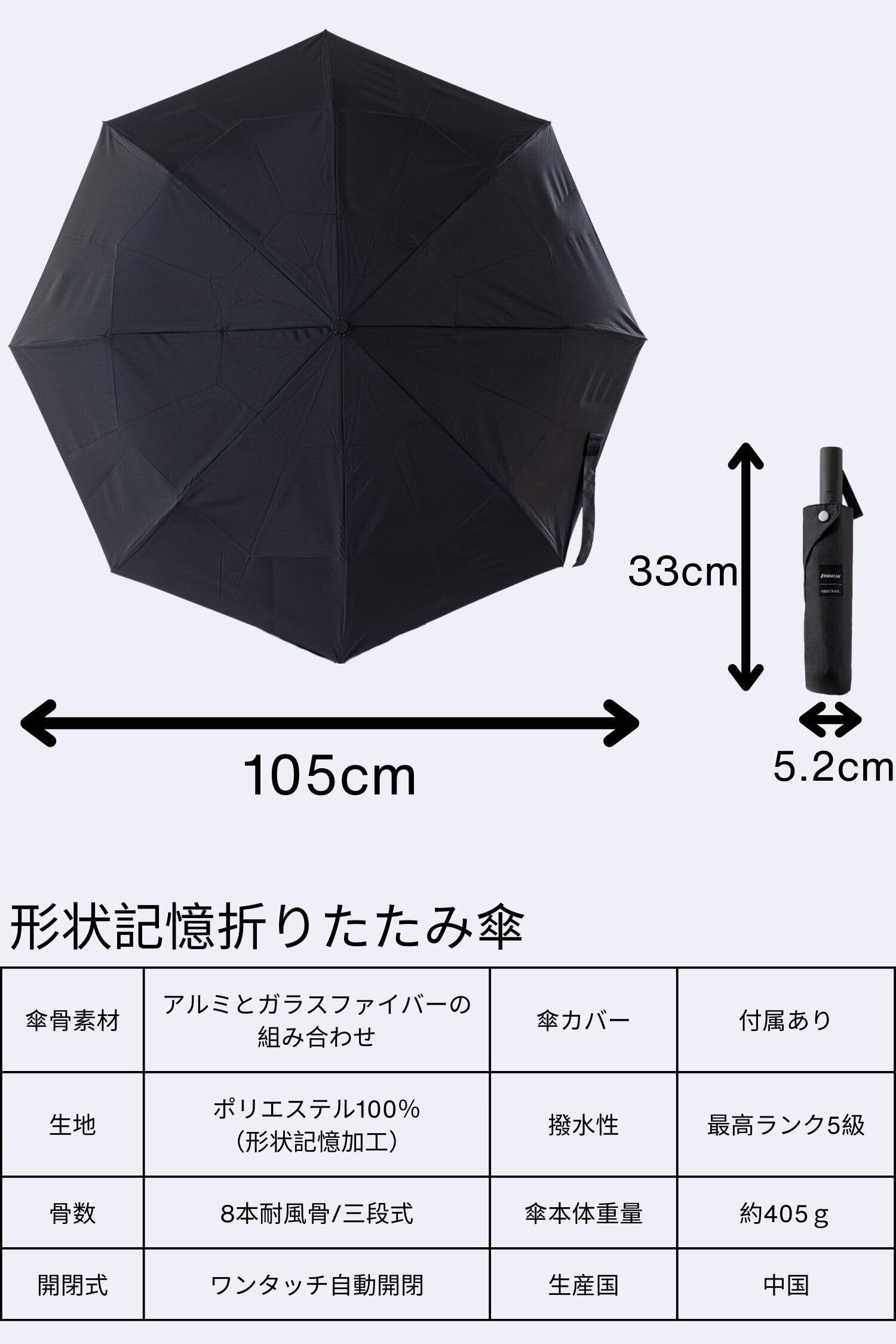 FANACAN 3秒でたためる傘 形状記憶折りたたみ傘 ワンタッチ自動開閉 丈夫 風に強い 8本骨 大きい傘 親骨58cm メンズ 男性