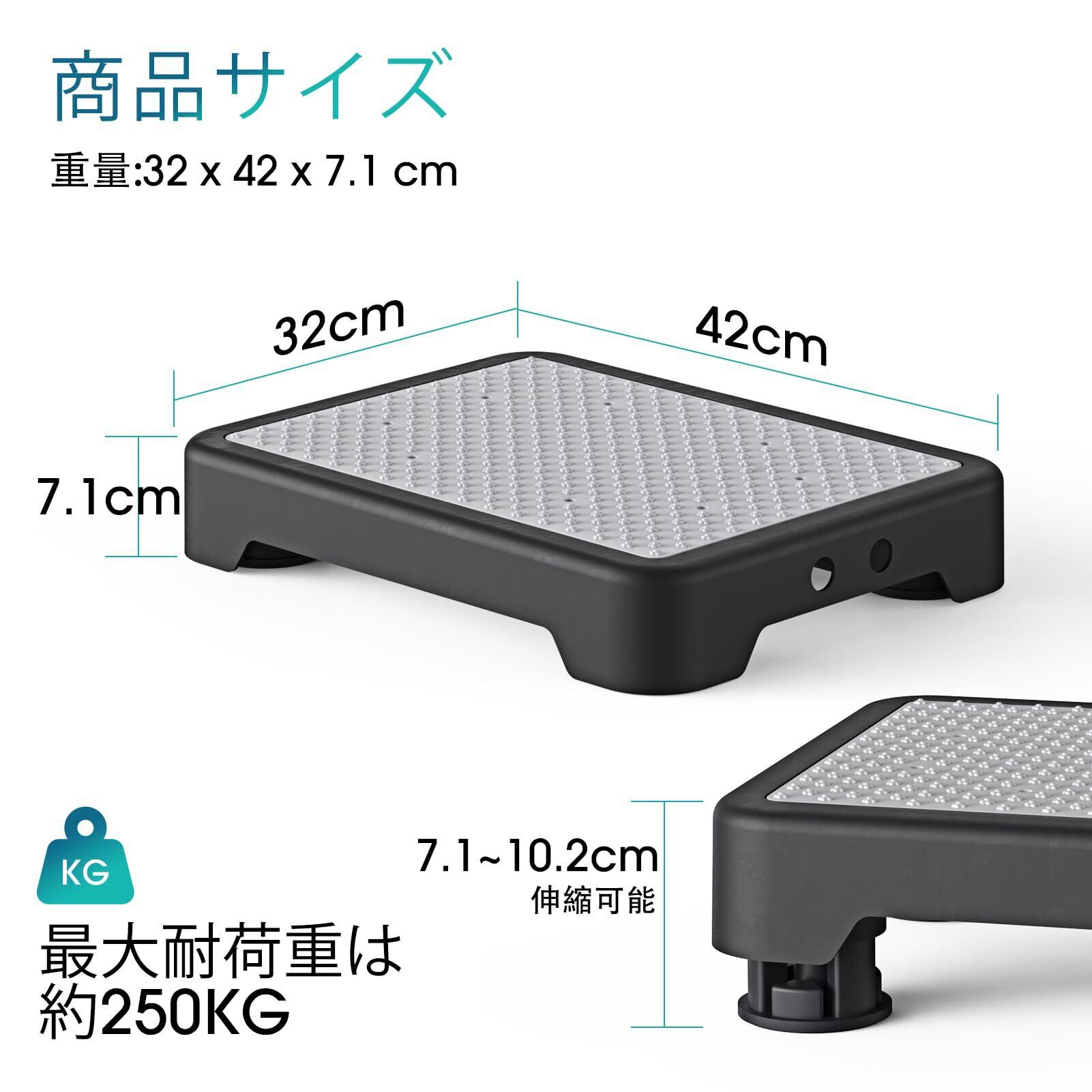 【段差解消・伸縮可能】本体幅42*奥行き32*高さ7.1~10.2cm省スペースのコンパクト踏み台です。ちょうどいい9.5 cmの高さ、玄関や床の段差が解消できます。 ※踏み台は長方形に設計されています。 踏む時は、足を真ん中の位置に近づけ、端の位置を踏まないようにしてください。